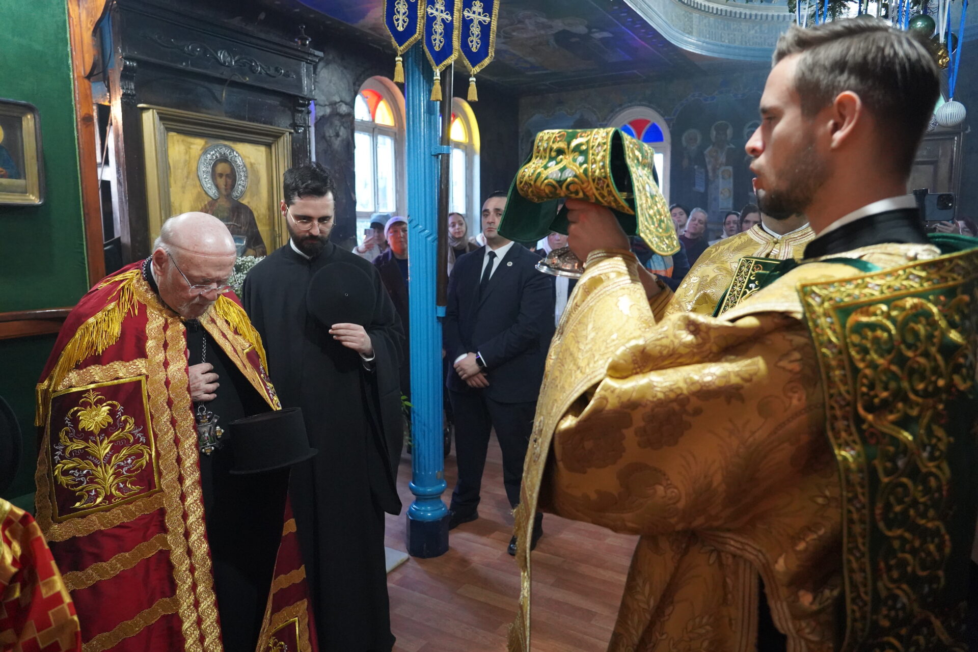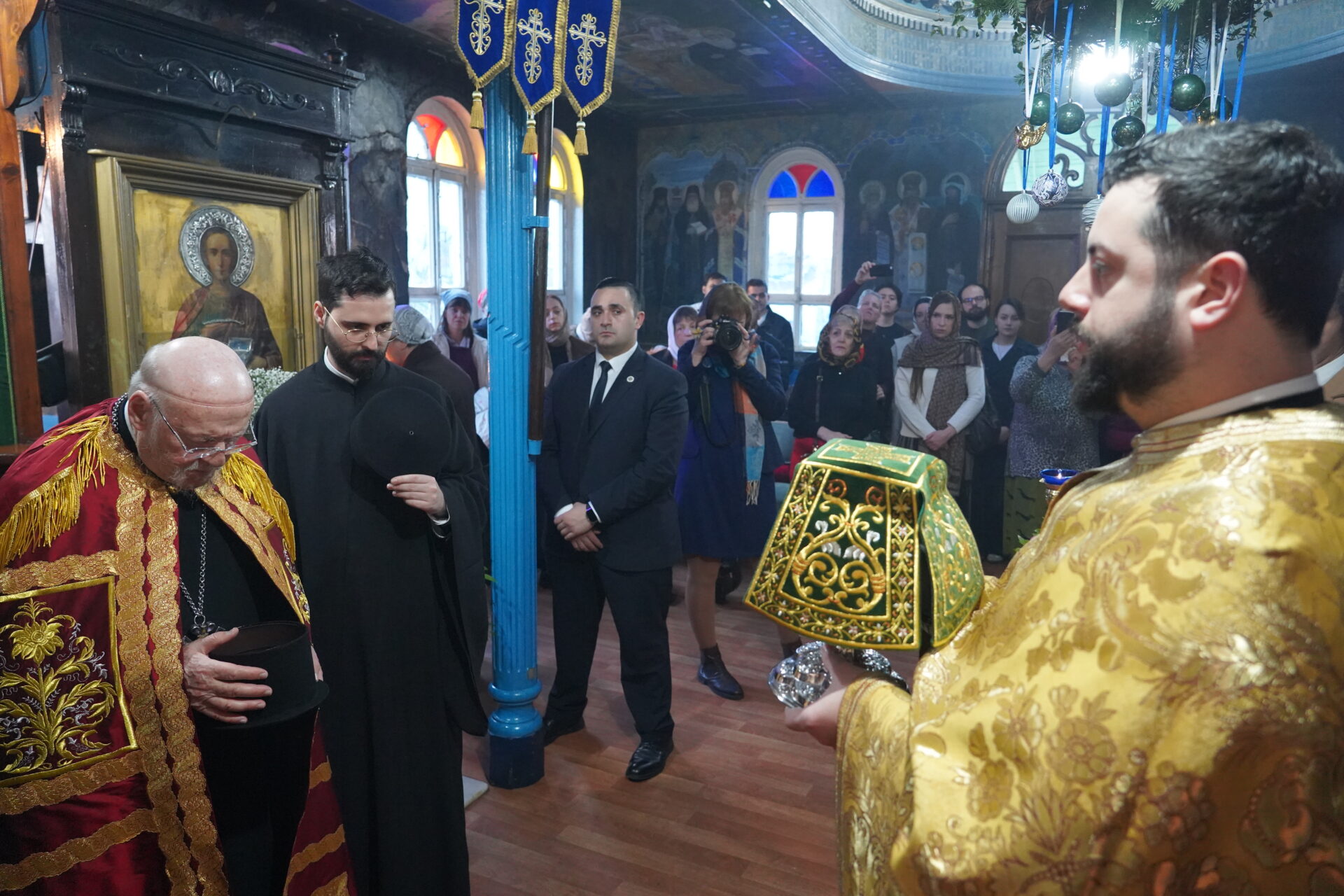 Τη Θεία Λειτουργία τέλεσε ο Πανοσιολ. Μ. Αρχιμανδρίτης κ. Ιάκωβος με τον Τριτεύοντα Πανοσιολ. κ. Επιφάνιο στα σλαβωνικά και έψαλε η χορωδία της Ενορίας. Εκκλησιάστηκαν ο Γενικός Πρόξενος της Μολδαβίας Εντιμ. κ. Sergiu Gurduza, κληρικοί και πλήθος πιστών.