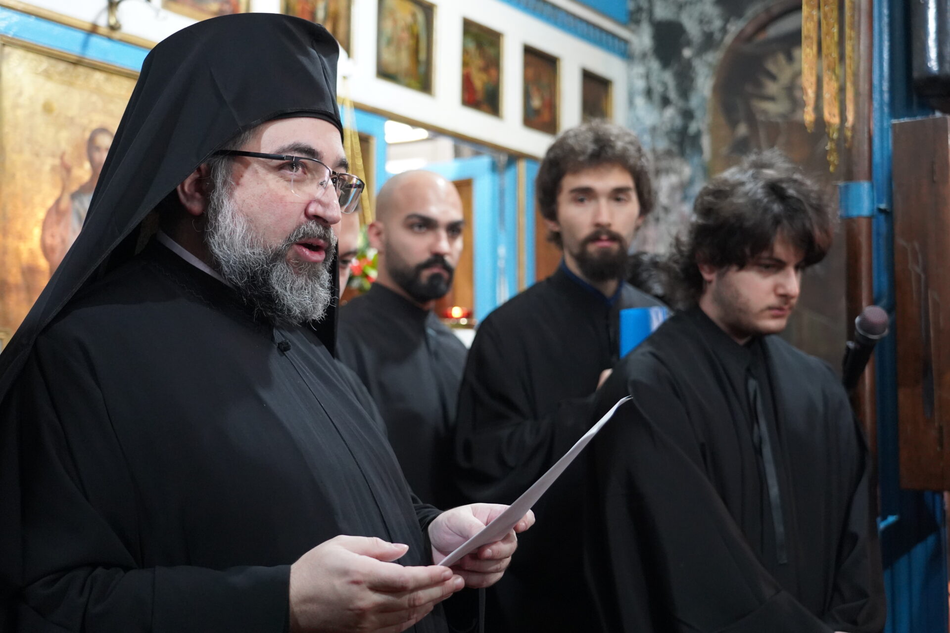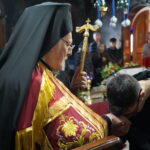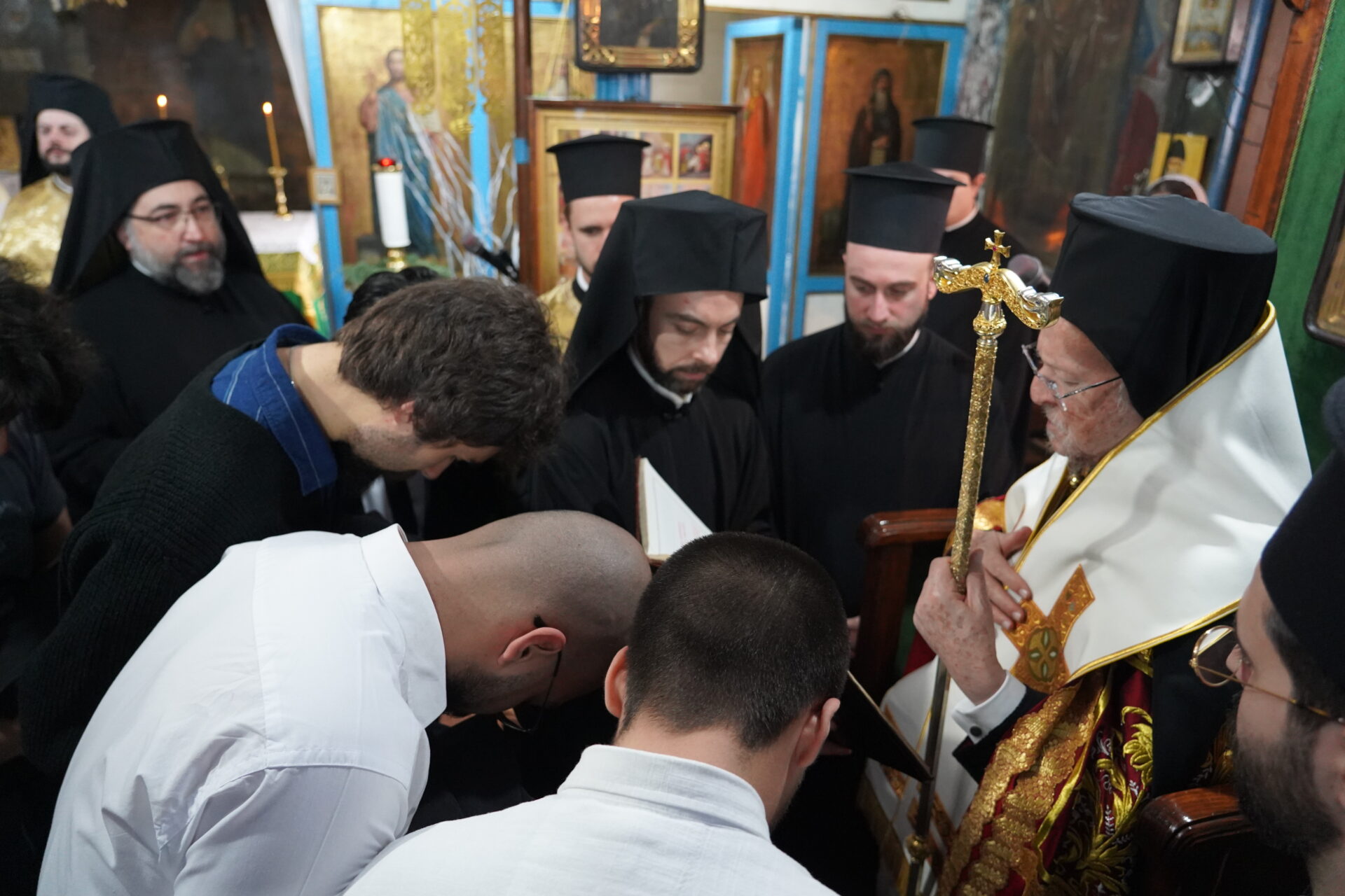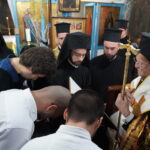 Στο τέλος της θείας λειτουργίας ο Παναγιώτατος χειροθέτησε σε Αναγνώστες πέντε νέους της Κοινότητας.