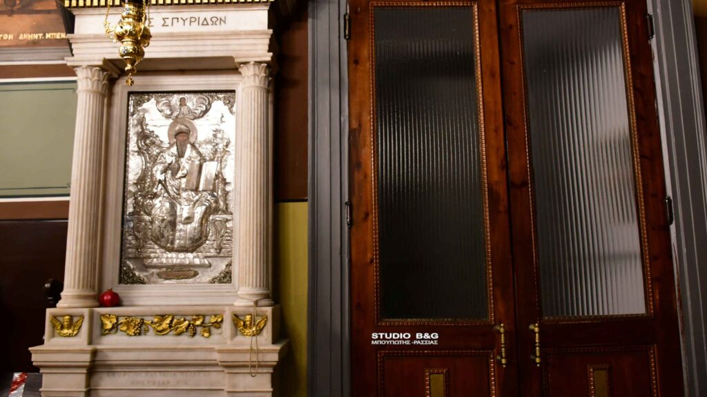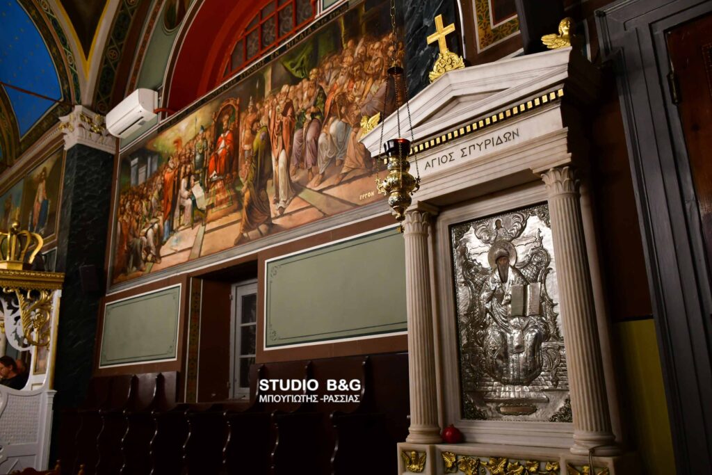 Πανηγυρικά τιμάται η μνήμη του Αγίου Σπυρίδωνα στο Ναύπλιο, στον πρόσφατα ανακαινισμένο ιστορικό εκκλησάκι του Αγίου , στην καρδιά της παλιάς πόλης του Ναυπλίου. Φέτος λόγω της πανδημίας του κορονοϊού οι ακολουθίες τελέστηκαν κεκλεισμένων των θυρών χωρίς πιστούς παρά μόνο με τον εφημέριο και του Ιεροψάλτες. Ο ιστορικός ναός του Αγίου Σπυρίδωνα έμελλε να συνδέεται με το τραγικό γεγονός της Ιστορίας μας, την δολοφονία του πρώτου κυβερνήτη της Ελεύθερης Ελλάδος , Ιωάννη Καποδίστρια. Στον ιστορικό ναό του Αγίου Σπυρίδωνα ένα κυριακάτικο φθινοπωρινό πρωινό στις 27 Σεπτεμβρίου του 1831 και ενώ η θεία λειτουργία είχε ξεκινήσει και οι πιστοί εντός και εκτός του Ναού ανέμεναν την έλευση του Εθνικού Κυβερνήτη Καποδίστρια. Όμως ξαφνικοί πυροβολισμοί αναστατώνουν το κλήρο και όσους πιστούς ευρίσκοντο εντός του ναού. Η θεία λειτουργία σταμάτησε και όλοι προσπάθησαν να εξέλθουν από την μικρή θύρα της εκκλησίας προκειμένου να δουν τι συνέβη. Το θέαμα που αντίκρισαν μπροστά στην είσοδο της εκκλησίας ήταν συγκλονιστικό. Ο Κυβερνήτης κειτόταν νεκρός μέσα σε μια λίμνη αίματος.