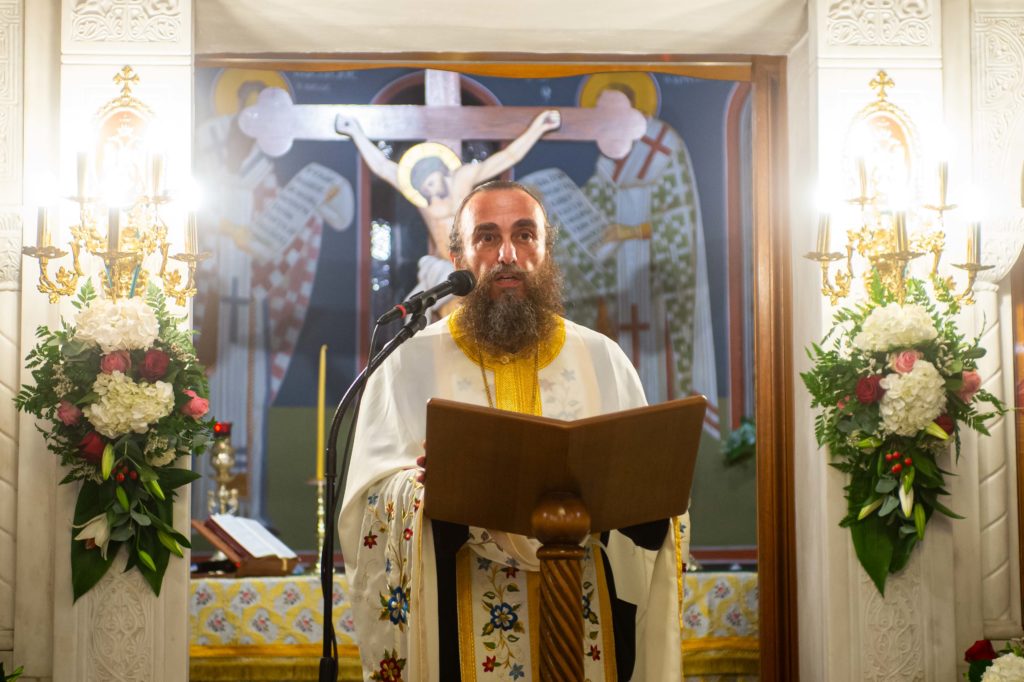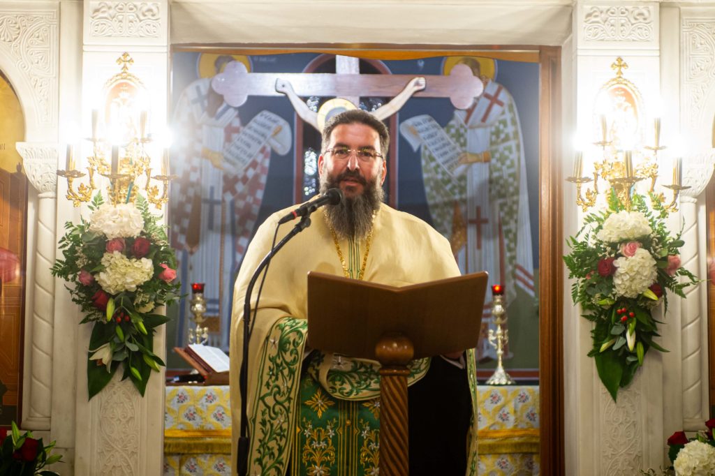 Του πανηγυρικού εσπερινού προέστη ο Πρωτοσύγκελλος της Ιεράς Μητροπόλεως Μεσσηνίας, Αρχιμ. Φίλιππος Χαμαργιάς, πλαισιωμένος από τον Αρχιερατικό Επίτροπο Πύλου Αρχιμ. Ειρηναίο Γκουγκούνη, τον Αιδεσιμολογιώτατο Πρωτοπρεσβύτερο Αντώνιο Μπαφαλούκο και πολλούς κληρικούς της Ιεράς Μητροπόλεως Μεσσηνίας. Των τοπικών αρχών προέστη ο Δήμαρχος Πύλου- Νέστορος κ. Παναγιώτης Καρβέλας και πλήθος μελών του Δημοτικού Συμβουλίου. Προ του πέρατος της Ακολουθίας του Εσπερινού ο Πρωτοσύγκελλος παρουσίασε στο πολυπληθές εκκλησίασμα τον φιλοξενούμενο κληρικό και παρακάλεσε τον π. Αντώνιο Μπαφαλούκο να κηρύξει τον θείο λόγο.
