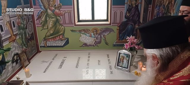 Στο τέλος της Θεία Λειτουργίας τελέσθηκε Τρισάγιο στον τάφο του μακαριστού Μητροπολίτου Αργολίδος κυρού Ιακώβου, ο οποίος υπήρξε κτήτορας της Ιεράς Μονής και ο τάφος του βρίσκεται σε υπόγειο παρεκκλήσιο κάτω από το Καθολικό.