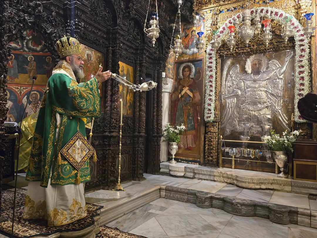 Με λαμπρότητα πραγματοποιήθηκε η Αρχιερατική Θεία Λειτουργία, υπό του Σεβασμιωτάτου Μητροπολίτου Σύμης κ. Χρυσοστόμου, στην Ιερά Μονή Ταξιάρχη Μιχαήλ Του Πανορμίτου.