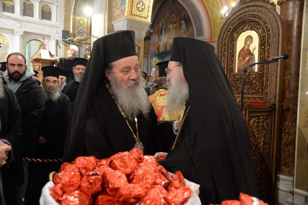 Τέλος, ὁ Σεβασμιώτατος, ἀνεφέρθη στά γεγονότα τά ὁποῖα σημάδεψαν τήν χρονιά πού πέρασε καί εὐχήθηκε νά βασιλεύσῃ ἡ ἀγάπη στίς καρδιές καί στίς κοινωνίες καί ἡ εἰρήνη, πού εἶναι ἀπαραίτητη στούς καιρούς μας, ἀφοῦ πολλοί συνάνθρωποί μας βιώνουν τήν κόλαση τοῦ πολέμου, τόσο στόν Βορρά, ὃσο καί στήν Μέση Ἀνατολή.