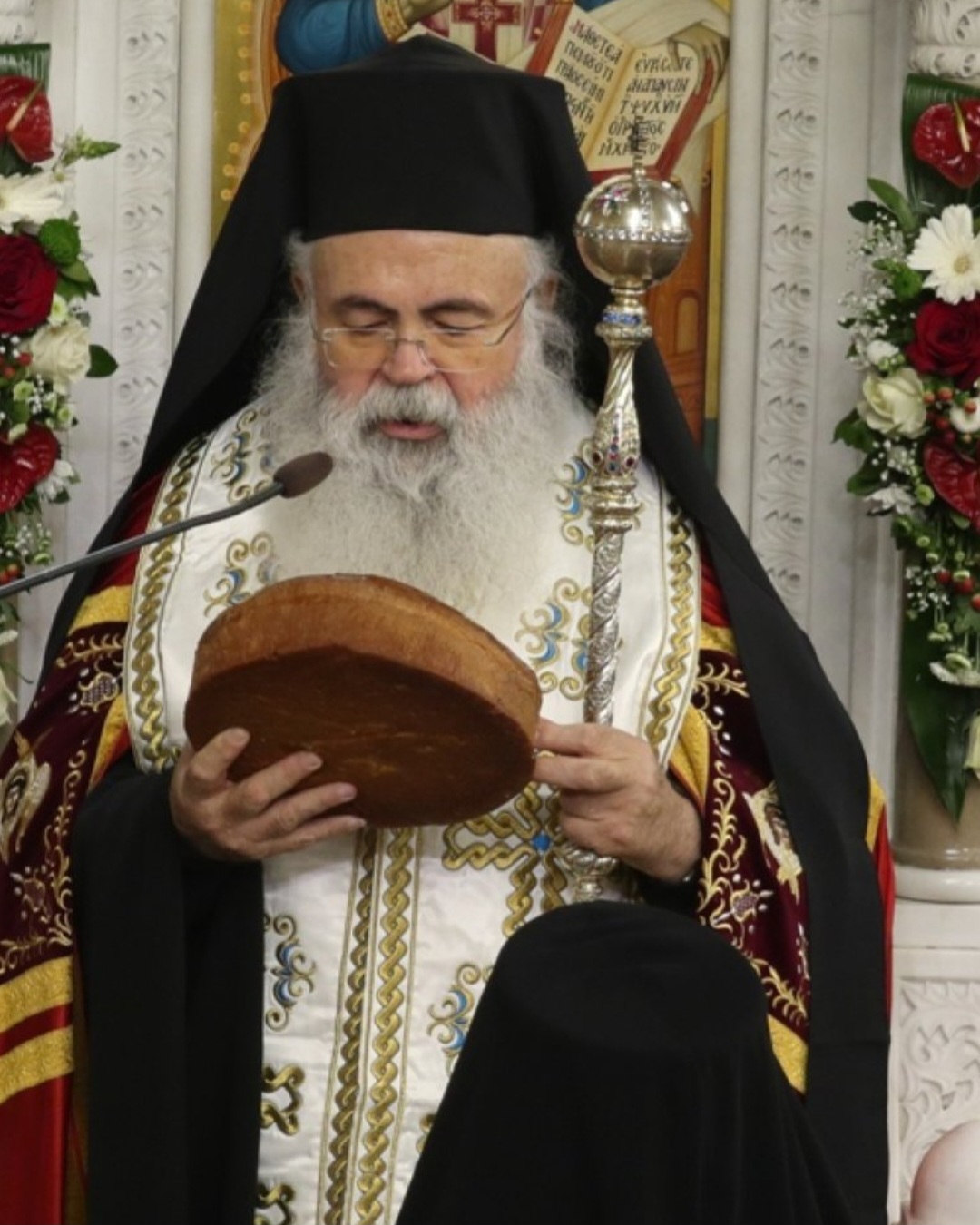 Στην αντιφώνησή του, ο Μακαριώτατος κ. Γεώργιος υπογράμμισε ότι χωρίς την πίστη στο Χριστό οι άνθρωποι και τα έθνη δεν μπορούν να υπερβούν τις δυσκολίες της ζωής, αλλ’ ούτε και να αντιμετωπίσουν αποτελεσματικά τις συνέπειες ιστορικών γεγονότων, που επηρεάζουν αρνητικά τη ζωή τους, όπως συγκριμένα η Κύπρος την Τουρκική κατοχή, και αντιπροσέφερε αναμνηστικά δώρα στον Σεβασμιώτατο κ. Θεολόγο.
