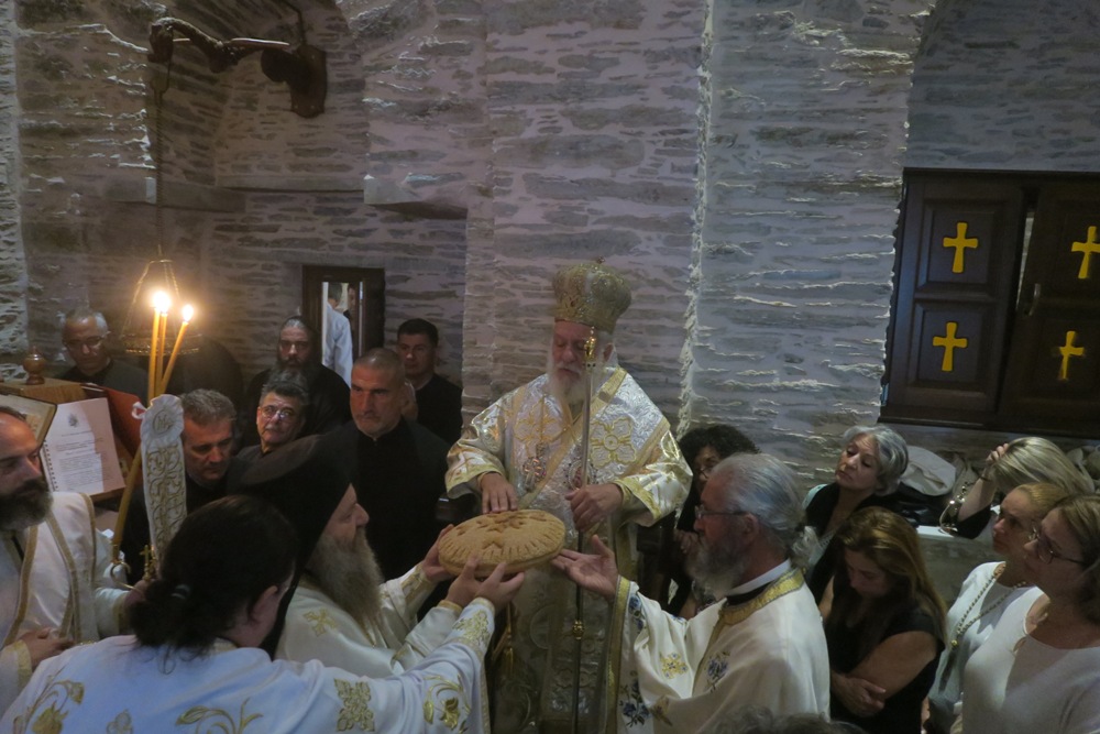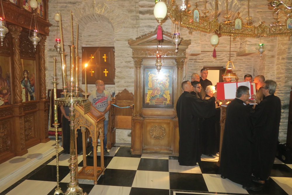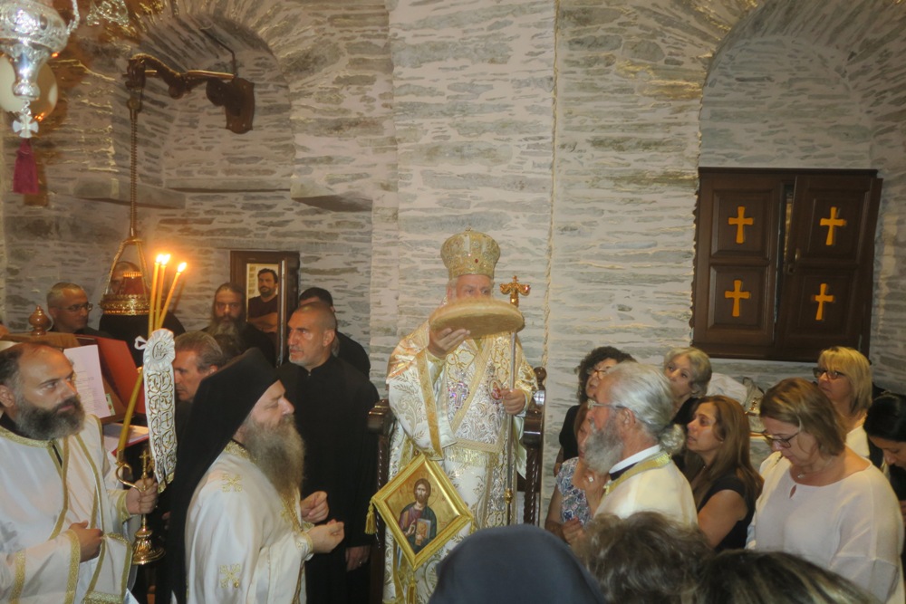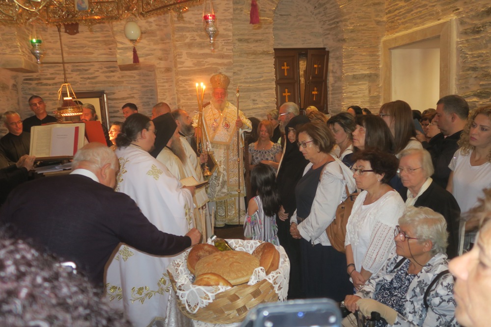 Τα μεσάνυχτα θα πλεύσει στη Μύκονο και το Σάββατο, 20 Ιουλίου, το πρωί θα ιερουργήσει στον Καθολικό της Ιεράς Μονής Παναγίας Τουρλιανής και θα τελέσει τεσσαρακονθήμερο μνημόσυνο φιλογενούςς και φιλανθρώπου Μυκονίου.