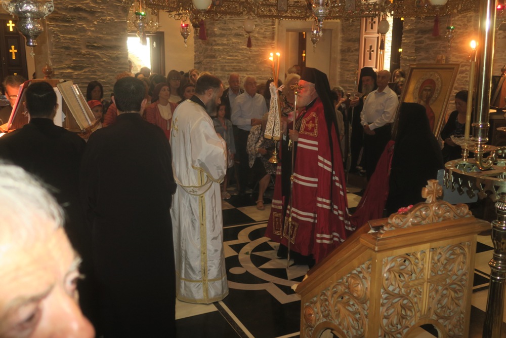 Λαοθάλασσα πιστών από την Άνδρο και ευλαβών προσκυνητών από την Ελλάδα και το εξωτερικό κατέκλυσε σήμερα το πρωί τους αύλιους χώρους και το νεόκτιστο Καθολικό της Ιεράς Μονής Αγίας Μαρίνης, στα Αποίκια της Άνδρου, όπου ιερούργησε ο Σεβασμιώτατος κ. Δωρόθεος Β’, με τη συμμετοχή των Πατέρων της Μονής και Κληρικών από την Άνδρο και την Κύπρο και Χορού Ιεροψαλτών από τη Λεμεσό της Κύπρου και με την παρουσία του Δημάρχου Άνδρου κ. Θεοδόσιου Σουσούδη, του νεοεκλεγέντος Δημάρχου κ. Δημητρίου Λοτσάρη, του Επάρχου Άνδρου κ. Λάσκαρη, του διατελέσαντος Δημάρχου κ. Γιαννίση, Αξιωματικών του Λιμενικού Σώματος Άνδρου και Δημοτικών Συμβούλων.