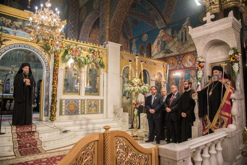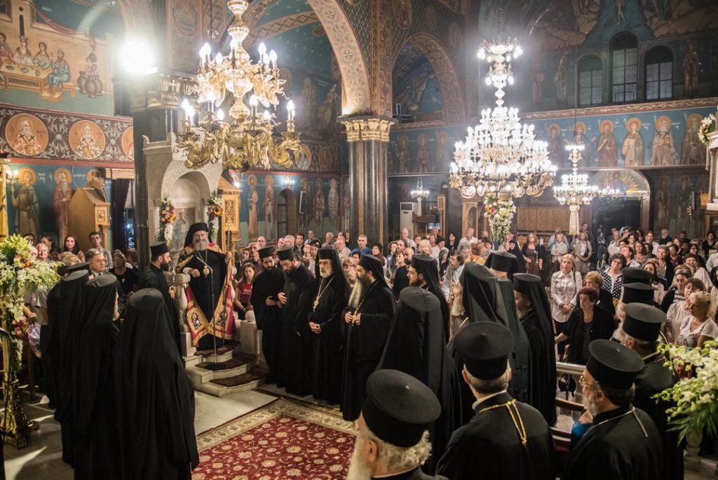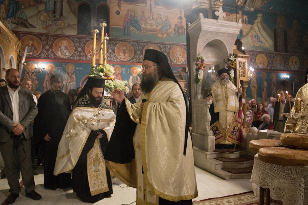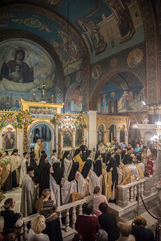 Με τη δέουσα λαμπρότητα τελέσθηκε το Σάββατο 5 Οκτωβρίου 2019 ο Μέγας Πανηγυρικός Πολυαρχιερατικός Εσπερινός, χοροστατούντος του Σεβασμιωτάτου Μητροπολίτου Μάνης κ. Χρυσοστόμου και συγχοροστατούντων των Σεβασμιωτάτων Μητροπολιτών Σάμου, Ικαρίας και Κορσεών κ. Ευσεβίου και του οικείου Ποιμενάρχου Νέας Ιωνίας και Φιλαδελφείας κ. Γαβριήλ και τη συμμετοχή πολλών κληρικών.