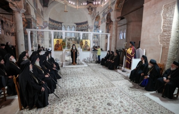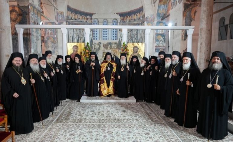 Συμμετείχαν επίσης οι Σεβασμιώτατοι Μητροπολίτες Σεβαστείας κ. Σεραφείμ, Ξάνθης και Περιθεωρίου κ. Παντελεήμων, Άρτης κ. Καλλίνικος, Τρίκκης, Γαρδικίου και Πύλης κ. Χρυσόστομος, Σισανίου και Σιατίστης κ. Αθανάσιος, Λήμνου και Αγίου Ευστρατίου κ. Ιερόθεος, Λαγκαδά, Λητής και Ρεντίνης κ. Πλάτωνας, Πολυανής και Κιλκισίου κ. Βαρθολομαίος, ο Θεοφιλέστατος Επίσκοπος Ευμενείας κ. Ειρηναίος και ο Ποιμενάρχης μας, Σεβασμιώτατος Μητροπολίτης Βεροίας, Ναούσης και Καμπανίας κ. Παντελεήμων, ο οποίος προσκάλεσε αδελφικά τους Αγίους Αρχιερείς για να συμμετάσχουν στην τελετή αναγνώσεως της Συνοδικής και Πατριαρχικής Πράξεως του πνευματικού του πατρός, Αγίου Γερασίμου του Υμνογράφου, που θα πραγματοποιηθεί αύριο κατά την Πολυαρχιερατική Θεία Λειτουργία.
