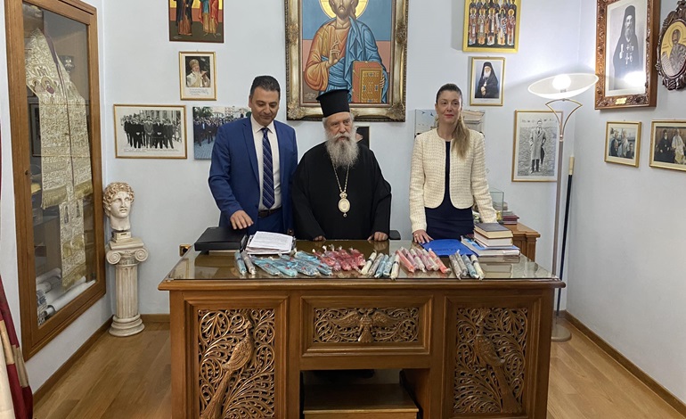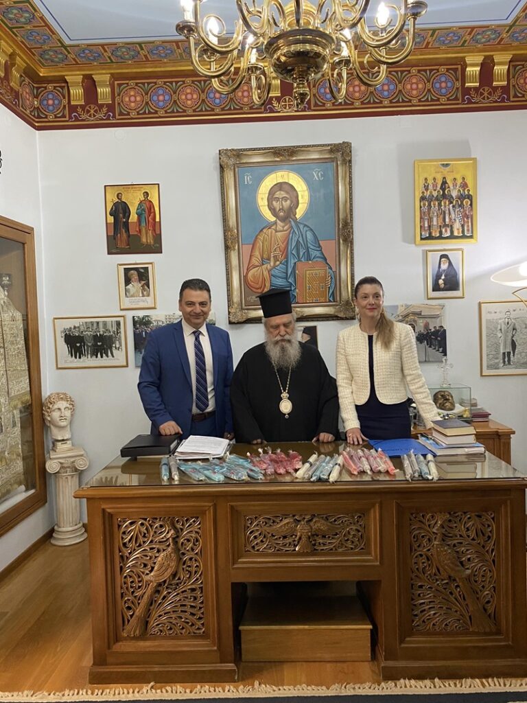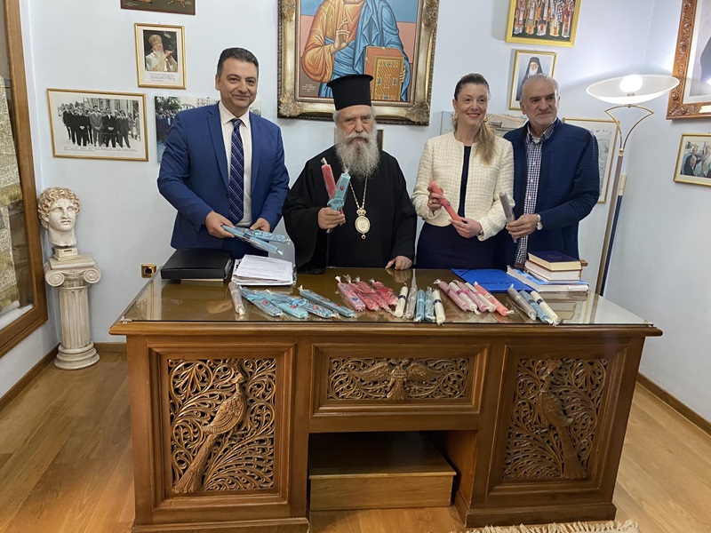 Ἡ Παγκρήτια Τράπεζα στό πλαίσιο τῆς κοινωνικῆς εὐθύνης μέσῳ τοῦ Διευθυντοῦ τοῦ ὑποκαταστήματος Τριπόλεως προσέφερε πρὸς τὴν Ἱερὰ Μητρόπολη Μαντινείας καὶ Κυνουρίας καί τὸ Φιλανθρωπικὸ Πρόγραμμα «ΤΟ ΚΑΛΑΘΙ ΤΟΥ ΠΤΩΧΟΥ ΑΔΕΛΦΟΥ» 200 πασχαλινὲς λαμπάδες, οἱ ὁποῖες θὰ διανεμηθοῦν στοὺς ἀναξιοπαθοῦντες συνανθρώπους μας τὶς ἅγιες ἡμέρες τοῦ Πάσχα, μὲ σκοπὸ νὰ μεταλαμπαδεύσουμε στὰ σπίτια μας καὶ στὶς ψυχές μας τὸ Ἅγιο Φῶς τοῦ Ἀναστάντος Χριστοῦ.Τὶς λαμπάδες παρέλαβε σήμερα, Τετάρτη 17 Ἀπριλίου 2024, ὁ Τοποτηρητὴς τῆς Ἱερᾶς Μητροπόλεως Μαντινείας καὶ Κυνουρίας Σεβασμιώτατος Μητροπολίτης Μονεμβασίας καὶ Σπάρτης κ.κ. ΕΥΣΤΑΘΙΟΣ, ὁ ὁποῖος εὐχαρίστησε, εὐλόγησε καὶ ἐπαίνεσε τὴν Παγκρήτια Τράπεζα καὶ τοὺς ἐκπροσώπους της, εὐχόμενος Καλὸ καὶ Εὐλογημένο Πάσχα καὶ τὸ Φῶς τῆς Ἀναστάσεως νὰ φωτίζει πάντας.