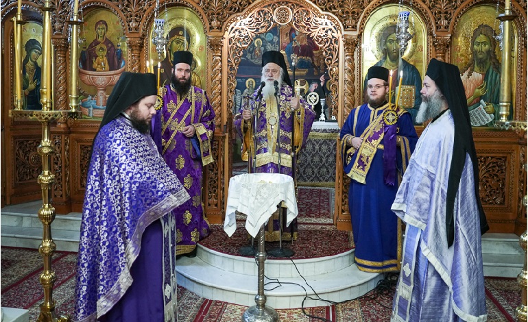 Την Τετάρτη 20 Μαρτίου το πρωί ο Σεβασμιώτατος Μητροπολίτης Βεροίας, Ναούσης και Καμπανίας κ. Παντελεήμων τέλεσε την πρώτη Προηγιασμένη θεία Λειτουργία και κήρυξε τον θείο λόγο στο Καθολικό της Ιεράς Μονής Παναγίας Δοβρά στη Βέροια.
