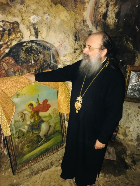 Τὴν ἄλλη ἡμέρα τῆς Ἑορτῆς τοῦ Ἁγίου Γεωργίου, ὁ Σεβασμιώτατος Μητροπολίτης Πατρῶν κ. Χρυσόστομος, ἐπεσκέφθη τὸ ἱστορικὸ σπήλαιο, παλαιὸ ἀσκητήριο, τοῦ Ἁγίου Γεωργίου, ποὺ εὑρίσκεται σὲ ἀπόκρημνο μέρος, κοντὰ στὸ χωριὸ Πόρτες Ἀχαΐας.