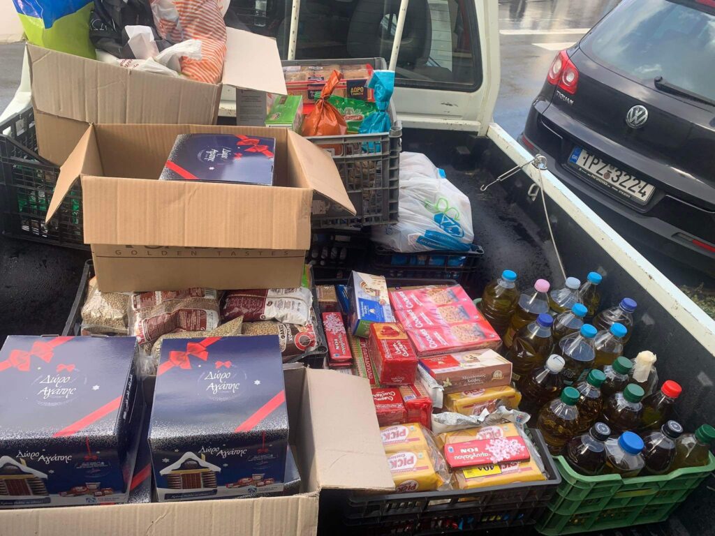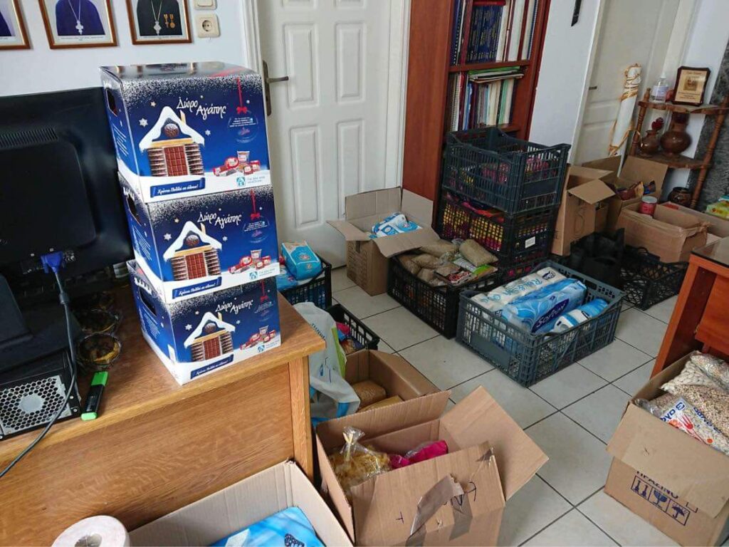 Συγκεντρώθηκαν τρόφιμα καί διάφορα ἄλλα εἴδη, ὅπως ὄσπρια, ζυμαρικά, κονσέρβες, γάλα, ψωμί, πατάτες, λάδι, ἀπορυπαντικά, χαρτικά καί πολλά ἄλλα.Οἱ συμπολῖτες μας προσέφεραν τό περίσευμα τῆς ἀγάπης τους στούς συνανθρώπους μας, πού δοκιμάζονται καί ἀνταποκρίθηκαν μέ μεγάλη χαρά σέ αὐτή τήν προσπάθεια τῆς Μητροπόλεως.Ὁ Σεβασμιώτατος Μητροπολίτης μας κ.κ. ΑΛΕΞΑΝΔΡΟΣ, μετά τή Θεία Λειτουργία τῆς Κυριακῆς εὐλόγησε μέ τήν παρουσία του τή συλλογή τῶν εἰδῶν καί ἀπηύθυνε εὐχαριστήριο μήνυμα καί εὐχές γιά τίς ἐπερχόμενες ἑορτές ἀπό τά τοπικά μέσα ἐνημερώσεως.