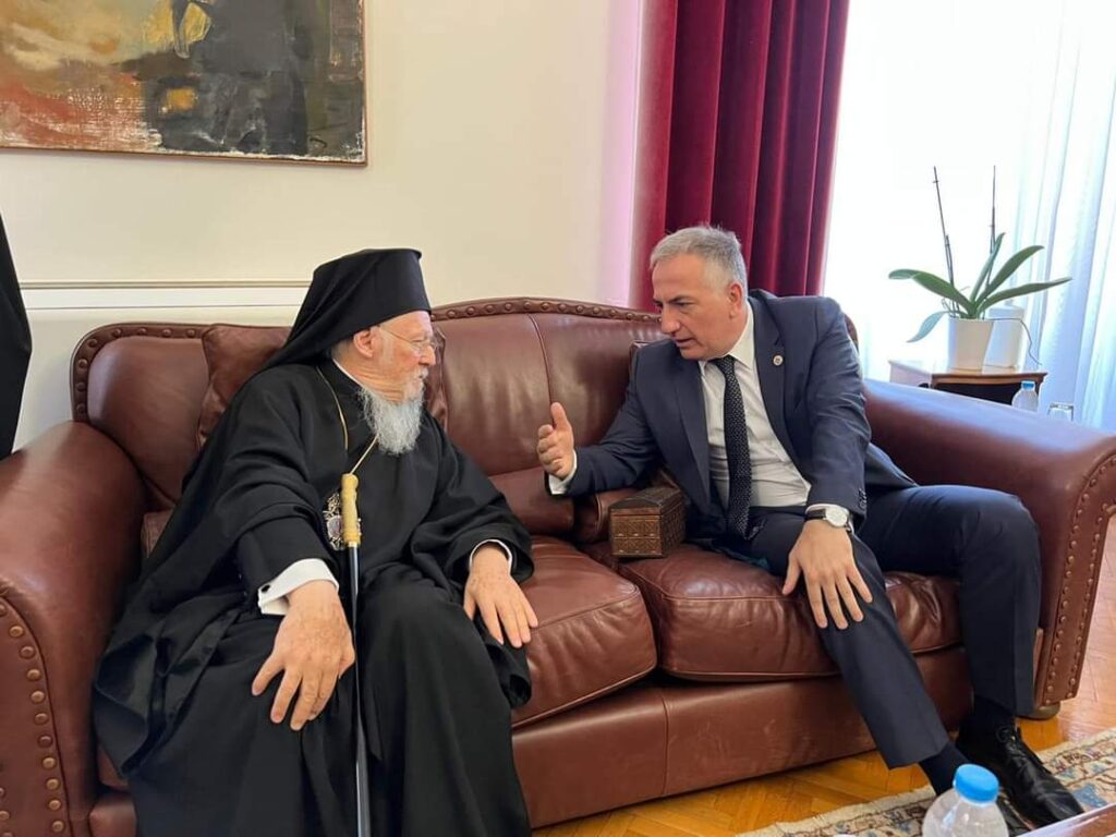 Ο Παναγιώτατος Οικουμενικός Πατριάρχης κ.κ.Βαρθολομαίος, στο πλαίσιο της επισκέψεως του στη Θεσσαλονίκη, συναντήθηκε το πρωί της Παρασκευής, 27 Μαΐου 2022, με τον Υφυπουργό Εσωτερικών, αρμόδιο για θέματα Μακεδονίας-Θράκης, Εξοχ. κ. Σταύρο Καλαφάτη, στο Διοικητήριο.