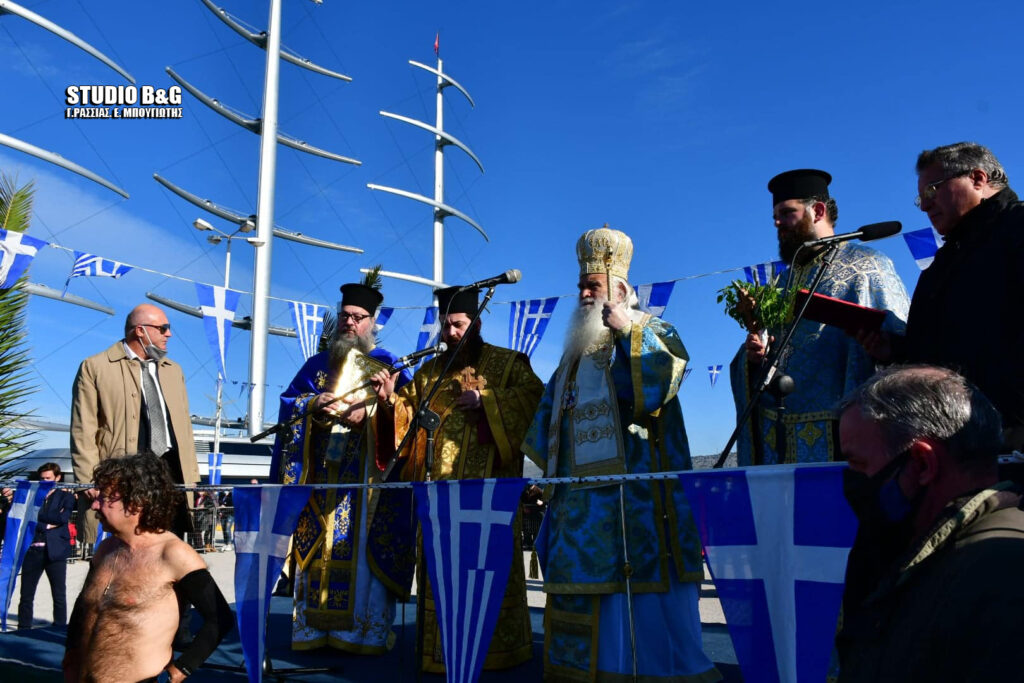 Στο Ναύπλιο την πρώτη πρωτεύουσα της Νεότερης Ελλάδας τελέσθηκε με κάθε λαμπρότητα η εορτή των Θεοφανίων στο λιμάνι της πόλης, Πέμπτη  6 Ιανουαρίου 2022.  Προηγήθηκε θεία λειτουργία και ο μεγάλος αγιασμός στον προσκυνηματικό Ιερό Ναό του Άγιου Αναστασίου στο Ναύπλιο χοροστατούντος του Μητροπολίτη Αργολίδας Νεκταρίου παρόντων των στρατιωτικών και πολιτικών αρχών του τόπου. Ακολούθησε η κατάδυση του Τιμίου Σταυρού στο λιμάνι του Ναυπλίου, ενώ αρκετοί ήταν αυτοί που έπεσαν για να πιάσουν τον Σταυρό.