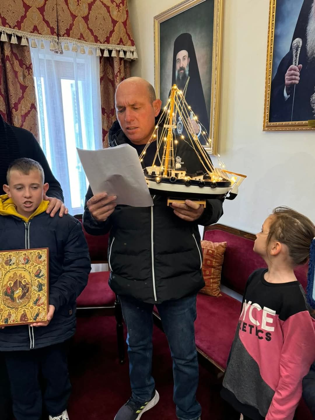 Τα μέλη του Πολιτιστικού Συλλόγου Μεγαλοχωρίου «ΤΟ ΜΕΤΟΧΙ», στον Μητροπολίτη Θήρας