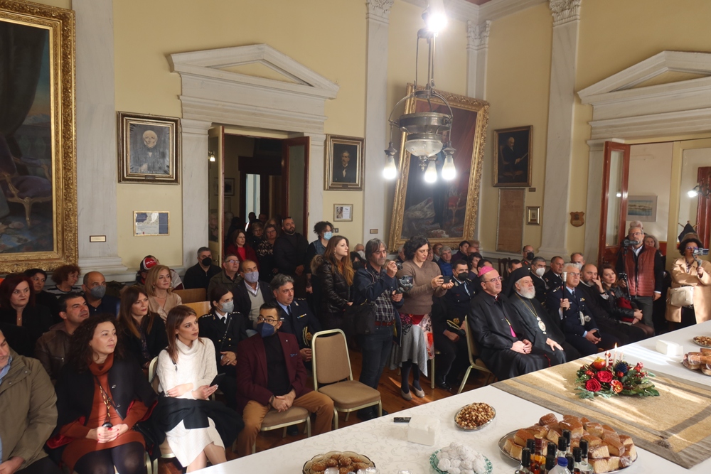 Στο ιστορικό και εμβληματικό Δημαρχιακό Μέγαρο της Ερμούπολης μετέβη σήμερα ο Σεβασμιώτατος κ. Δωρόθεος Β’, ύστερα από πρόσκληση του Δημάρχου Σύρου-Ερμούπολης κ. Νικολάου Λειβαδάρα, και ευλόγησε την Αγιοβασιλειόπιττα του Δήμου Σύρου-Ερμούπολης, με την παρουσία του Ρ/ Καθολικού Επισκόπου Σύρου κ. Πέτρου Στεφάνου, του Βουλευτού Κυκλάδων κ. Φιλ. Φόρτωμα, του Χωρικού Αντιπεριφερειάρχη Κυκλάδων κ. Γ. Λεονταρίτη, Περιφερειακών και Δημοτικών Συμβούλων, του Προέδρου του Επιμελητηρίου Κυκλάδων, Εκπροσώπων του Στρατού, του Ναυτικού και των Σωμάτων Ασφαλείας, Προέδρων τοπικών Φορέων και Οργανώσεων, των Εργαζομένων στο Δήμο και πολλών Ερμουπολιτών.