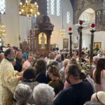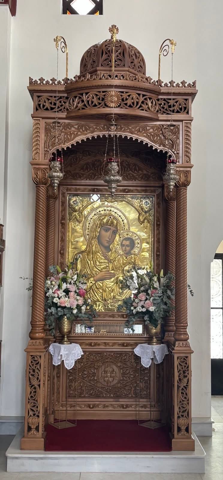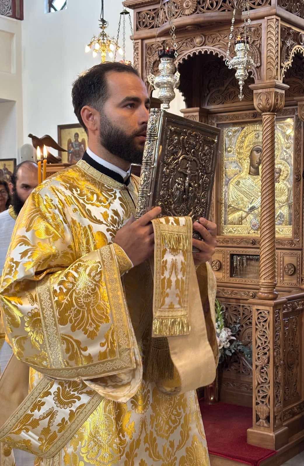 Την κυριώνυμο ημέρα της εορτής, Παρασκευή 15 Αυγούστου, ο Σεβασμιώτατος Μητροπολίτης Θήρας, Αμοργού και Νήσων κ. Αμφιλόχιος χοροστάτησε στον Όρθρο και στη συνέχεια τέλεσε την Πανηγυρική Θεία Λειτουργία στον περιβεβλημένο και πεποικιλμένο με τη θεία δόξα και τη χάρη της Κυρίας Θεοτόκου Ενοριακό Ιερό Ναό του Ευαγγελισμού στο Εμπορείο της Σαντορίνης, όπου από το έτος 2023 θησαυρίζεται ακριβές αντίγραφο της θαυματουργού ιεράς εικόνος της Παναγίας της «Ιεροσολυμιτίσσης», επιτελεί πλείστα όσα θαυμάσια και εορτάζει στις 15 Αυγούστου.