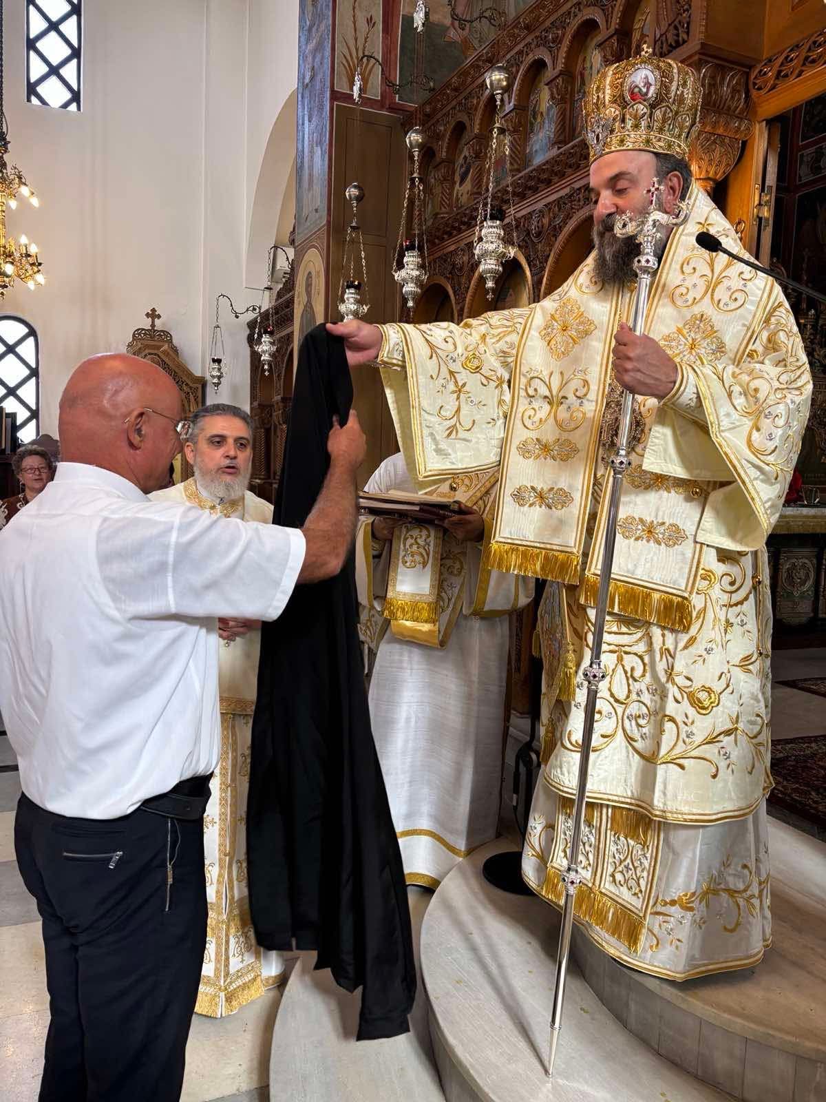 Μετά το πέρας της Θείας Λειτουργίας ο Σεβασμιώτατος Ποιμενάρχης κ. Αμφιλόχιος προέβη στην χειροθεσία του ευλαβεστάτου κ. Σωκράτους Γαβαλά σε αναγνώστη, ευλόγησε τα προσφερθέντα εδέσματα και ευχήθηκε σε όλους χρόνια πολλά, ευλογημένα και Παναγιοσκέπαστα.