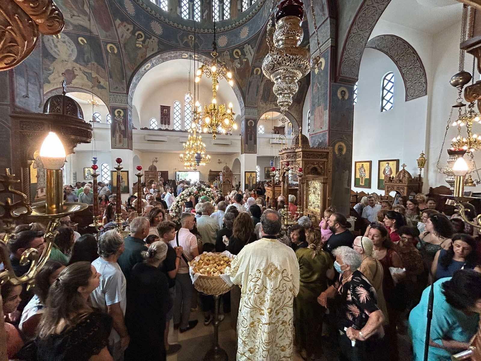 Ο πιστός λαός του Θεού προσήλθε ευλαβικά στους πανηγυρίζοντες Ιερούς Ναούς της Ιεράς Μητροπόλεως για να συμμετάσχει στη μεγάλη θεομητορική εορτή του Αυγούστου, να ζητήσει τις πρεσβείες της Μητέρας του Θεού, να συμψάλει τους αφιερωμένους σε Αυτήν θαυμάσιους εκκλησιαστικούς ύμνους και να μεταλάβει των Αχράντων Μυστηρίων.