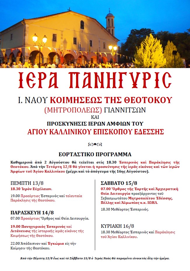 Εκκλησία της Ελλάδος Το Σάββατο 15 Αυγούστου πανηγυρίζει ο ιστορικός ιερός ναός Κοιμήσεως της Θεοτόκου (Μητρόπολη) Γιαννιτσών 1 min read About The Author MARTYRIA.GR See author's posts Continue Reading Previous Θεία Λειτουργία στην Ιερά Μονή Παναγίας «Σπηλιάς»Next Με εγκύκλιο σημείωμα του ο Μητροπολίτης Μεσσηνίας ζητάει οι πιστοί να φορούν και έξω από τους Ναούς μάσκες Διαβάστε επίσης 1 min read Εκκλησία της Ελλάδος Η εορτή της Ζωοδόχου Πηγής στην Ιερά Μητρόπολη Μεσσηνίας 1 min read Εκκλησία της Ελλάδος Η Εορτή της Ζωοδόχου Πηγής στην Ιερά Μητρόπολη Θήρας 1 min read Εκκλησία της Ελλάδος Η Εορτή της Ζωοδόχου Πηγής στην Ιερά Μητρόπολη Θεσσαλιώτιδος