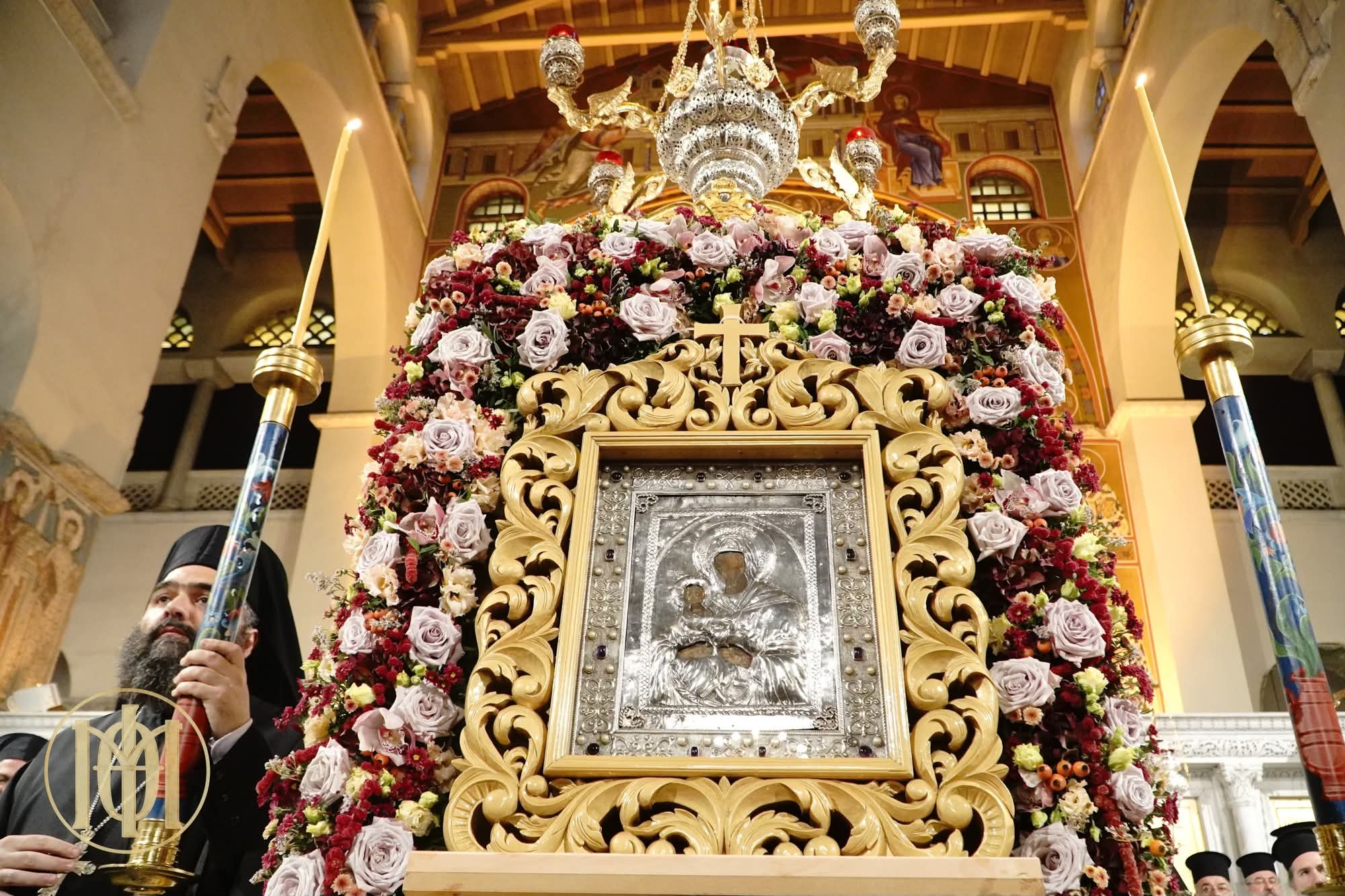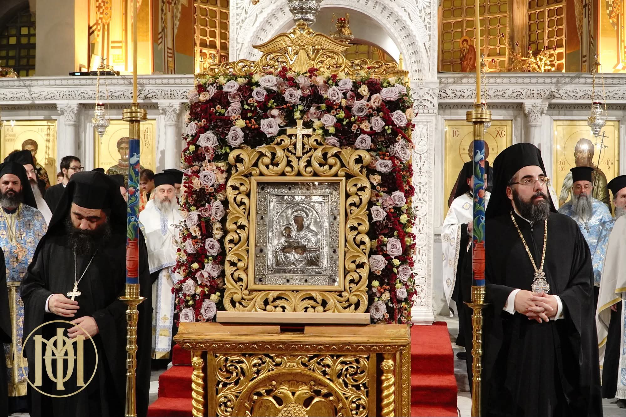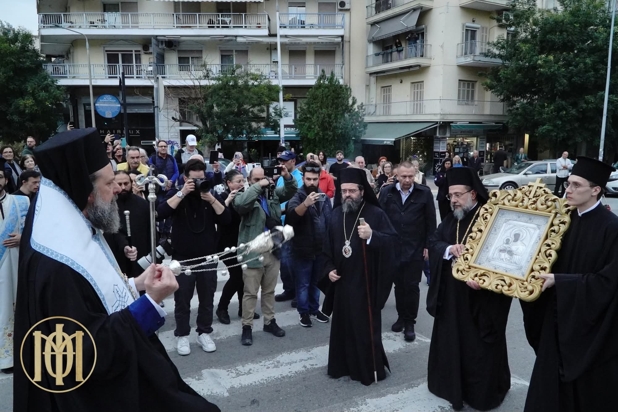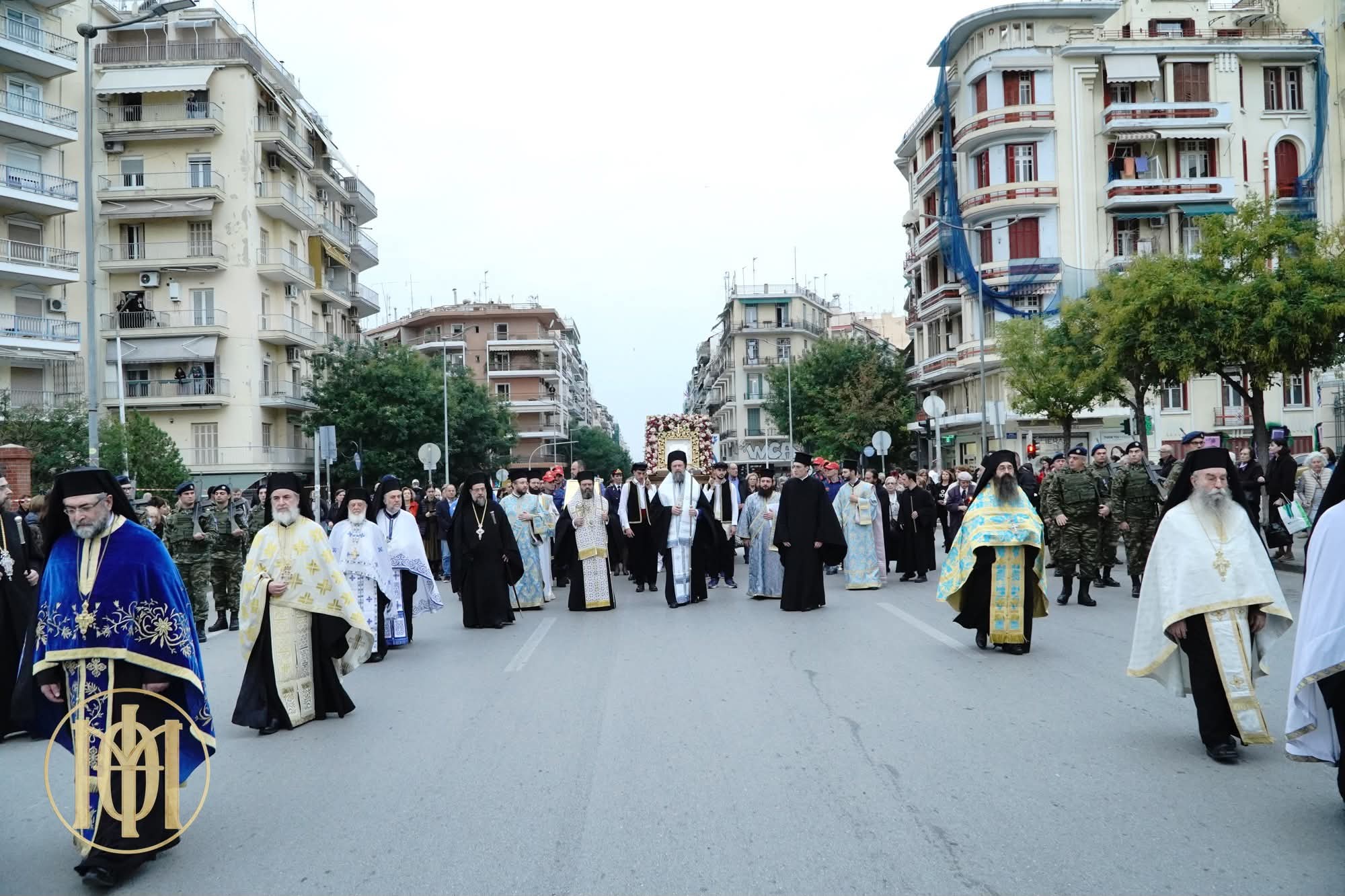 Το ιερό και χαριτοφόρο σέβασμα της Παναγίας μετέφερε στην Θεσσαλονίκη, επικεφαλής του Κλήρου και του λαού της Κομοτηνής, ο Μητροπολίτης Μαρωνείας και Κομοτηνής κ. Παντελεήμων και υποδέχθηκε ο Μητροπολίτης Θεσσαλονίκης κ. Φιλόθεος, ο ιερός Κλήρος, οι Άρχοντες και οι ευσεβείς Χριστιανοί της Θεσσαλονίκης.