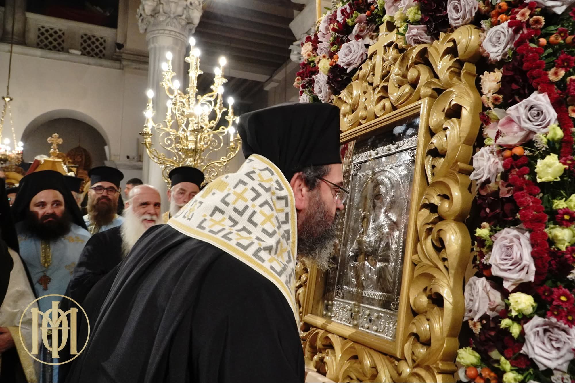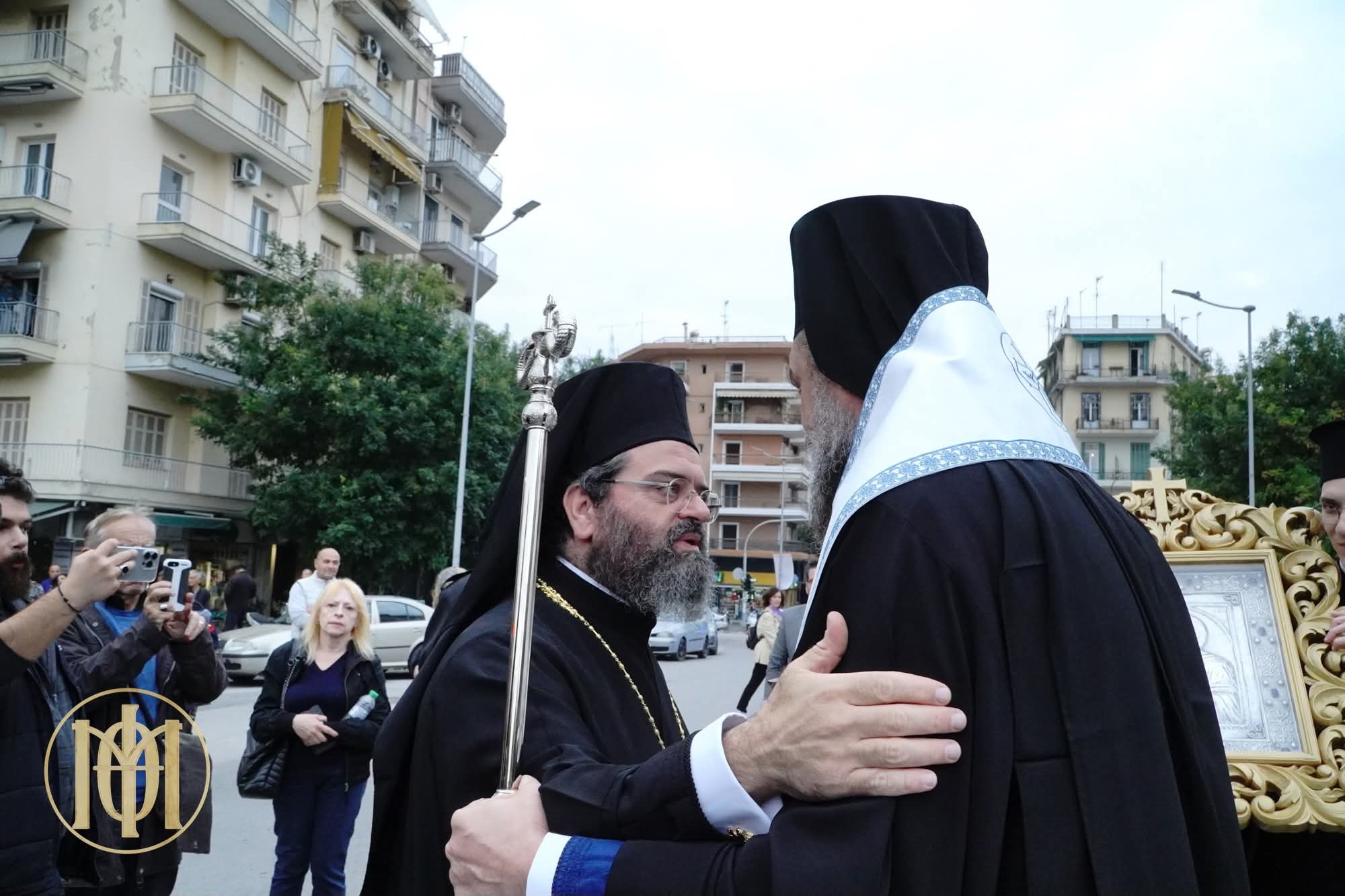 Ο Μητροπολίτης Φιλόθεος απηύθυνε θερμό καλωσόρισμα προς τον κ. Παντελεήμονα και τους κληρικούς της συνοδείας του, εκφράζοντας παράλληλα τα αισθήματα χαράς και τη συγκίνηση του κλήρου και του ευσεβούς λαού της Θεσσαλονίκης για την άφιξη του ιερού και σεβασμίου εικονίσματος.