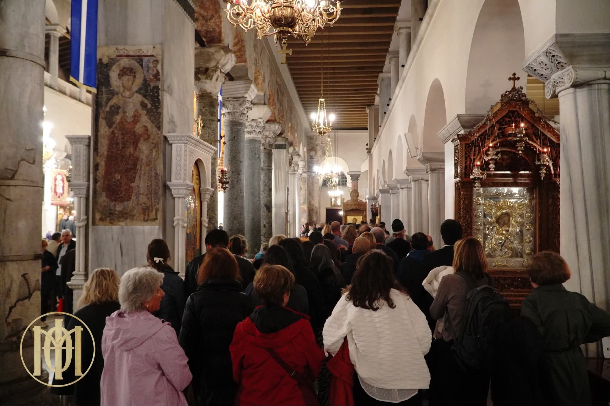 Εν συνεχεία, κλήρος και λαός με λιτανευτική πομπή συνόδευσαν την εικόνα της Θεοτόκου στον Προσκυνηματικό Ιερό Ναό του Αγίου Δημητρίου του Πολιούχου, όπου ετελέσθη επίσημη Δοξολογία χοροστατούντος του Μητροπολίτη Μαρωνείας και Κομοτηνής.