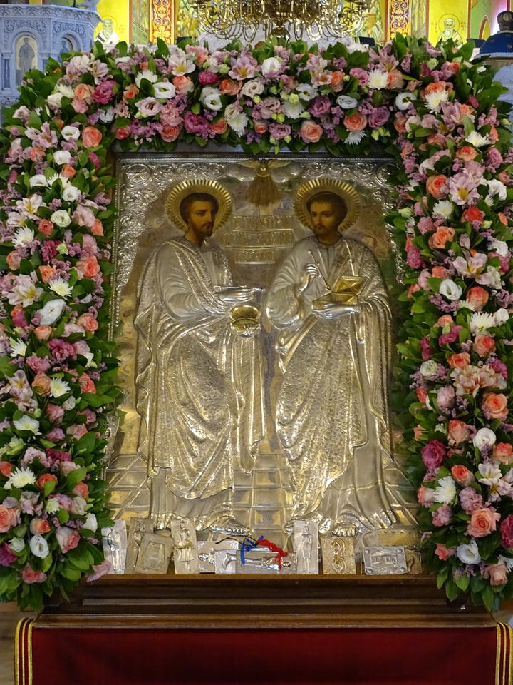 Με ιδιαίτερη λαμπρότητα και την παρουσία πλήθους πιστών εορτάσθηκε η σεπτή μνήμη των Αγίων ενδόξων θαυματουργών και ιαματικών Αναργύρων Κοσμά και Δαμιανού στον ομώνυμο πανηγυρίζοντα Μητροπολιτικό Ναό στη Νέα Ιωνία.
