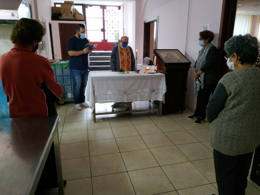 Το πρωί είχε τελεστεί η Θεία Λειτουργία από τον αρχιμανδρίτη Δαμάσκηνο Φυλακτό εις τιμήν των Αθηναίων Αγίων, ενώ το μεσημέρι ξεκίνησε και η διανομή του συσσιτίου από το ενοριακό φιλόπτωχο ταμείο της ενορίας με την ευθύνη του πρωτοπρεσβυτέρου Λάμπρου Ξεσφύγγη.