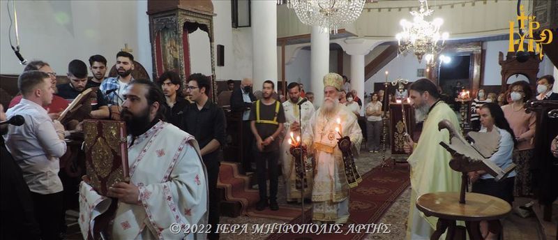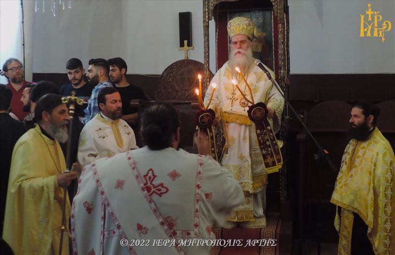 Την Τρίτη 31 Μαΐου 2022, το βράδυ, επί τη εορτή της Αποδόσεως του Πάσχα, στον Ιερό Ναό των Εισοδίων της Θεοτόκου-Αγίου Μερκουρίου, στο Επισκοπείο Άρτης, ετελέσθη Ιερά Αγρυπνία, προεξάρχοντος του Σεβασμιωτάτου Μητροπολίτου Άρτης κ. Καλλινίκου.