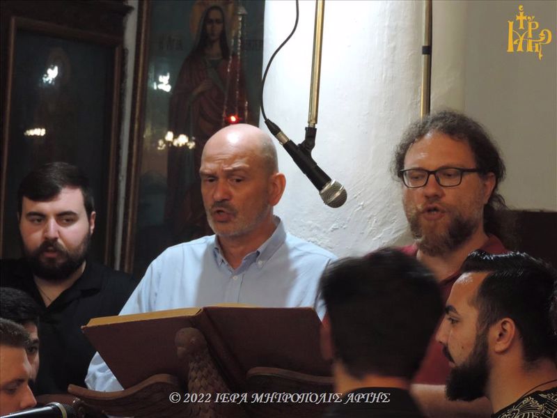 Έψαλε χορός φοιτητών του εν Άρτη Τμήματος Μουσικών Σπουδών, του Πανεπιστημίου Ιωαννίνων, υπό την διεύθυνση του Μόνιμου Επίκουρου Καθηγητή Μουσικολογίας κ. Νίκου Ανδρίκου, καθώς και του Αναπληρωτή Καθηγητή Μουσικολογίας κ. Κυριάκου Καλαϊτζίδη.