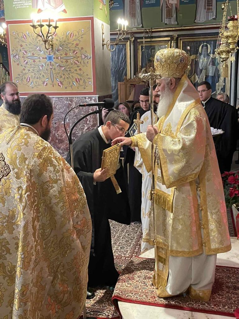 Στο τέλος της Θείας Λειτουργίας και λίγο πριν από την Απόλυση, ο Σεβασμιώτατος χειροθέτησε Αναγνώστη τον κ. Παναγιώτη Λιακόπουλο, μαθητή Γυμνασίου, υιό του Εφημερίου και Ιερατικού Προϊσταμένου του Μητροπολιτικού Ναού π. Αθανασίου Λιακόπουλου, ο οποίος διακονεί στο Ιερό Βήμα της ενορίας με ευλάβεια, προθυμία και σεμνότητα από τα πρώτα παιδικά του χρόνια.