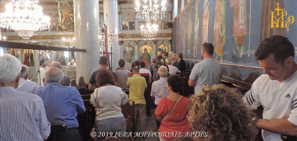 Την Κυριακή 18 Αυγούστου 2019, το πρωΐ, στον Ενοριακό Ιερό Ναό του Αγίου Γεωργίου Θεοδωριάνων Άρτης, ελειτούργησε ο Σεβασμιώτατος Μητροπολίτης Άρτης κ. Καλλίνικος.