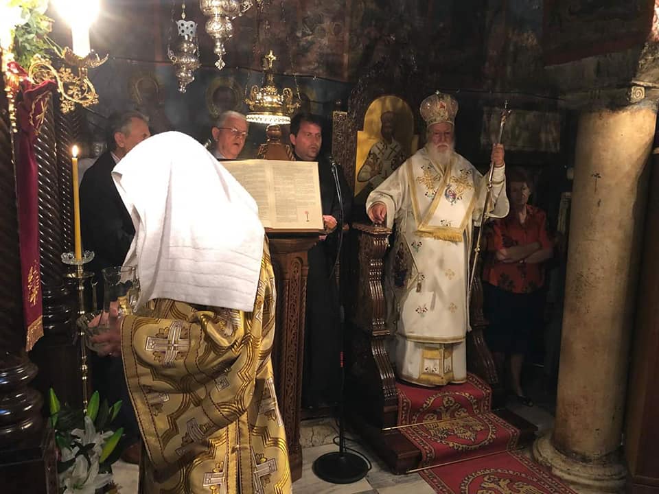 Στή Θεία Λειτουργία καί στήν Ἐνθρόνιση παρέστησαν οἱ Ἡγούμενοι τῶν Ἱερῶν Μονῶν Παμμεγίστων Ταξιαρχῶν Αἰγιαλείας Ἀρχιμ. Καλλίνικος Πουλῆς, Γεννεσίου Θεοτόκου Αἰμυαλῶν Γορτυνίας Ἀρχιμ Δαμασκηνός Παγανός, ἡ μέχρι τώρα Διαχειριστική Ἐπιτροπή τῆς Μονῆς, Κληρικοί, ὁ Περιφερειάρχης Πελοποννήσου κ. Πέτρος Τατούλης, ἐκπρόσωποι τῶν τοπικῶν ἀρχῶν καί πλῆθος Χριστιανῶν ἀπό τήν Τρίπολη καί τίς γύρω περιοχές, τήν Ἀργολίδα, τήν Κορινθία καί ἄλλα μέρη.