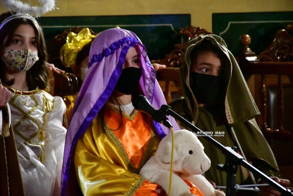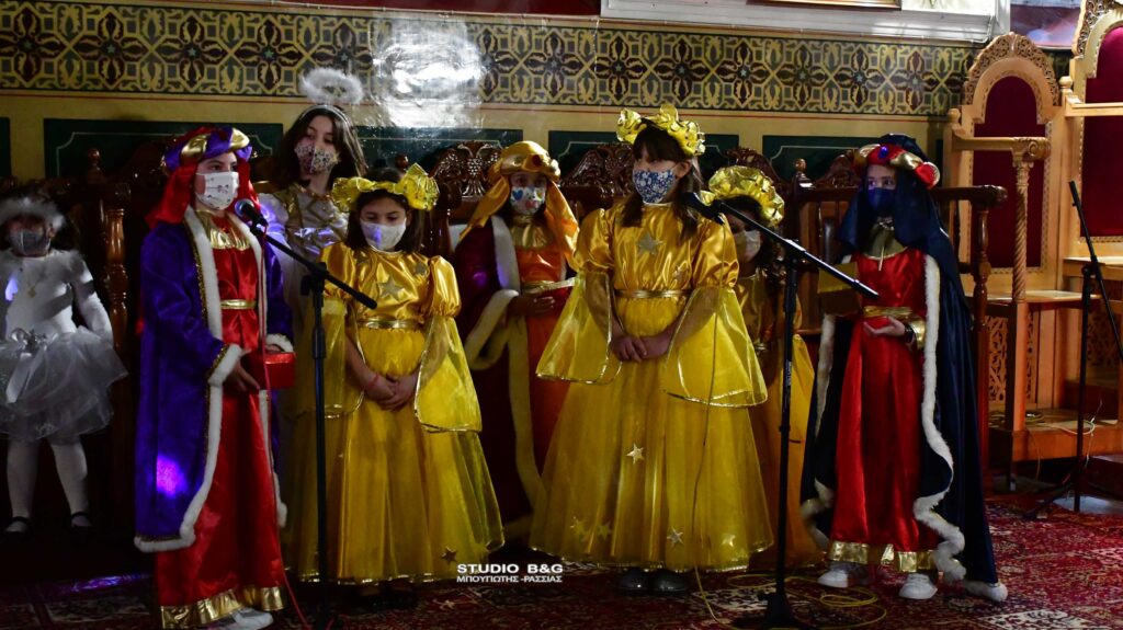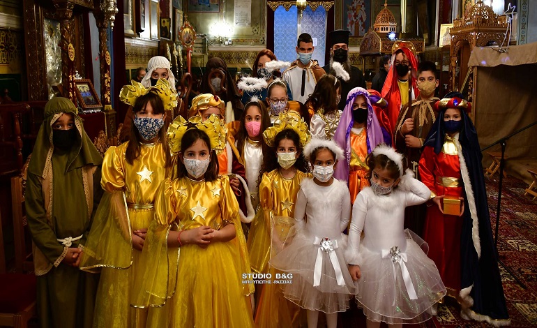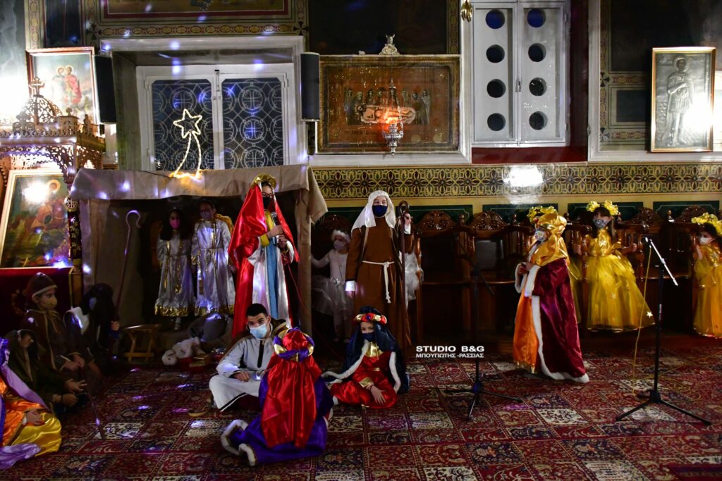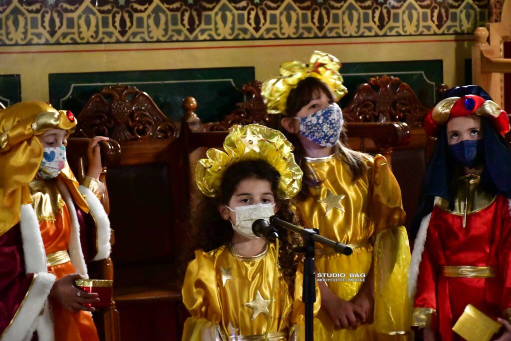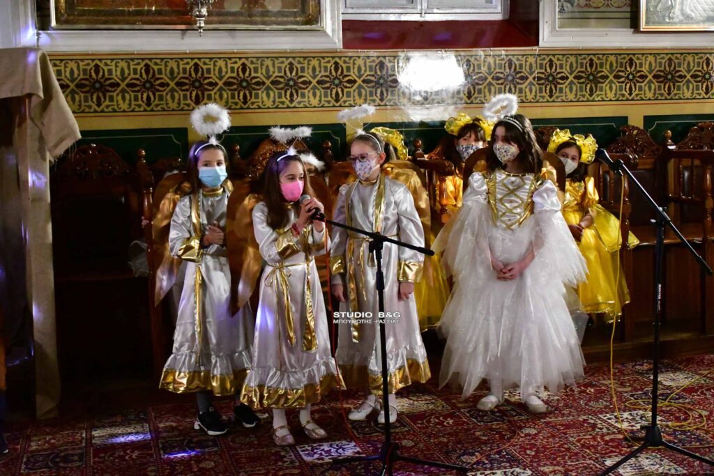 Τα μικρά παιδιά του κατηχητικού σχολείου της ενορίας της Αγίου Δημητρίου στην Ασίνη Αργολίδας ,διοργάνωσαν Χριστουγεννιάτικη γιορτή, με ποιήματα και θεατρική παράσταση με θέμα την Γέννηση του Χριστού.