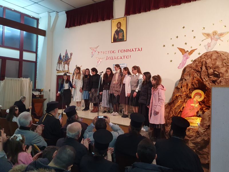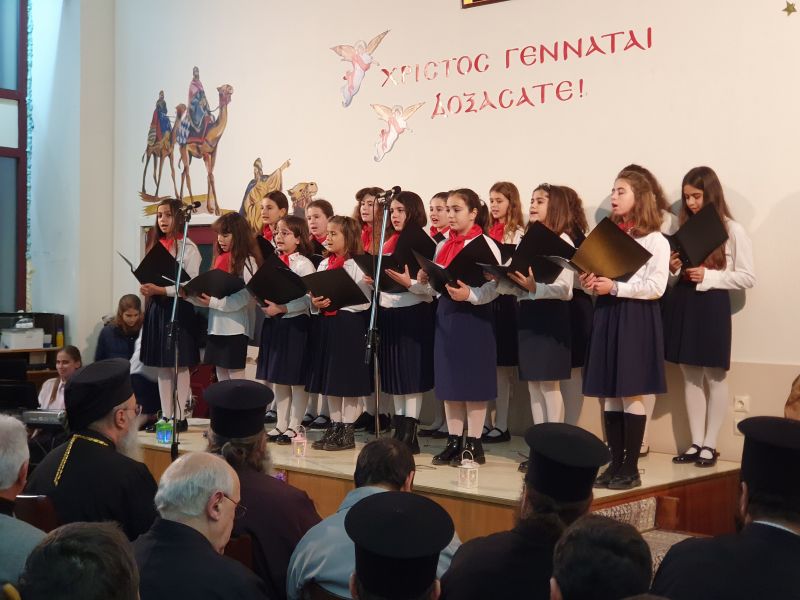 Τό πρόγραμμα τῆς ἑορτῆς ξεκίνησε μέ τήν παιδική χορωδία πού τραγούδησε χριστουγεννιάτικα τραγούδια.