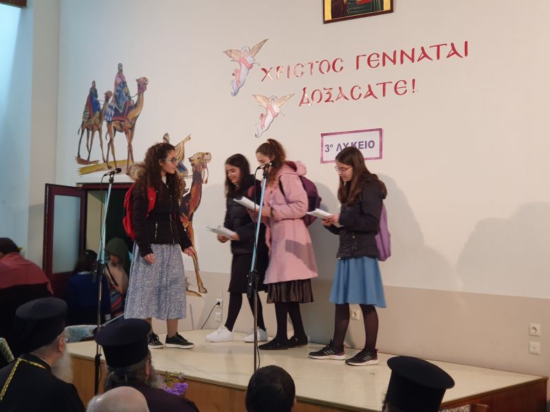 Στήν συνέχεια παίχτηκαν δύο θεατρικά, πού μετέδιδαν τό πνεῦμα τῆς ἑορτῆς τῶν Χριστουγέννων. Τό πρῶτο διαδραματιζόταν στήν ἐποχή μας τονίζοντας ὅτι τά ὀμορφότερα Χριστούγεννα τά ζοῦμε ὅταν βασιλεύει στήν καρδιά μας ἡ συγχωρητικότητα καί ἡ ἀγάπη. Τό δεύτερο μᾶς γύριζε στήν ἐποχή τῆς κατοχῆς τοῦ 1941 καί μᾶς ὑπενθύμιζε ὅτι ὁ ἄνθρωπος πού βιώνει τό μυστήριο τῆς κενώσεως τοῦ Θεοῦ καί μοιράζεται τά ἀγαθά του μέ τούς ἀνθρώπους πού βρίσκονται στό πόνο, στήν ἀρρώστια καί στή μιζέρια εἶναι πραγματικά ἐλεύθερος καί ποτἐ μόνος.