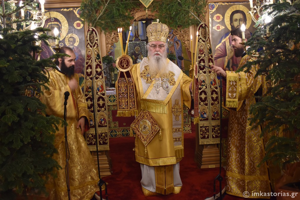 Ο Μητροπολίτης Καστορίας κ. Σεραφείμ προεξήρχε του Όρθρου και της Θείας Λειτουργίας. Συλλειτούργησαν οι Εφημέριοι του Ιερού Ναού, Αρχιμ. Στέφανος Σχοινάς και Πρωτ. Φώτιος Λεβέντης, καθώς και οι Διάκονοι Αγαθόνικος και Παύλος.