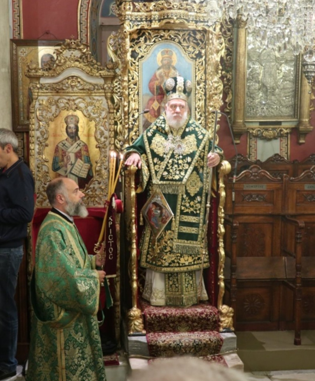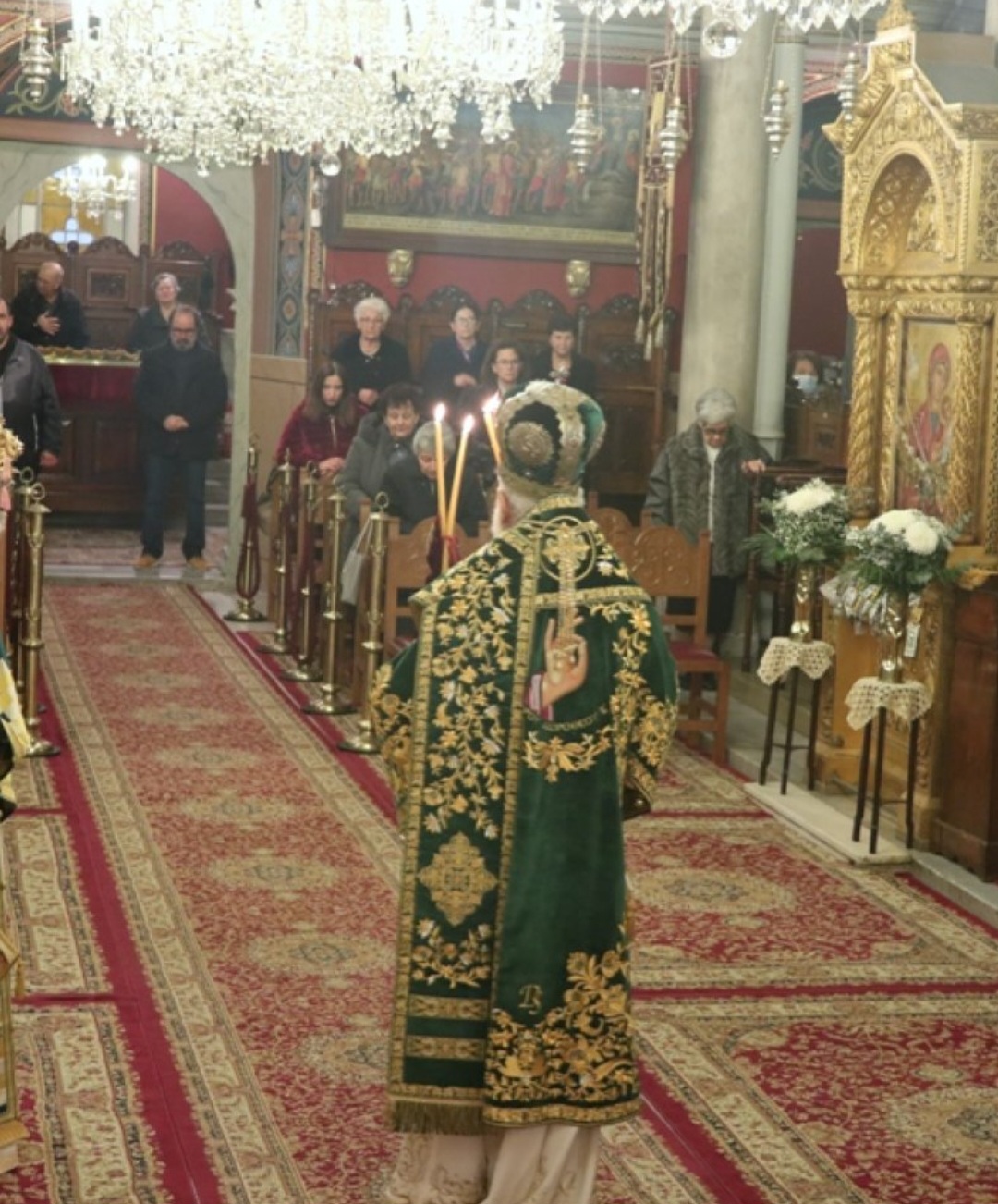 Προ του πέρατος της Θείας Λειτουργίας, ο Σεβασμιώτατος κ. Δωρόθεος Β’ κάλεσε τους πιστούς να ευχαριστήσουν το Θεό για το ευεργετικό δώρο της βροχής και τους απηύθυνε εόρτιες ευχές.