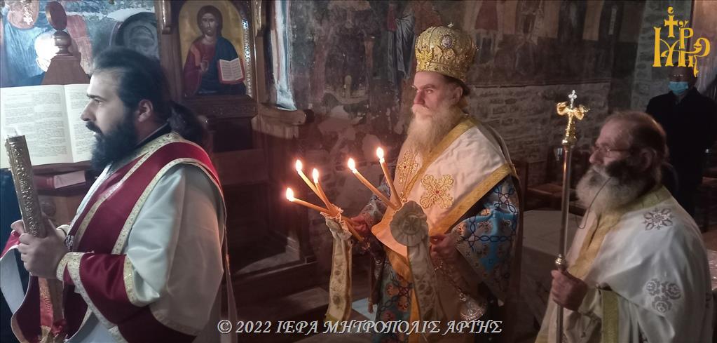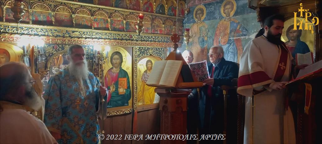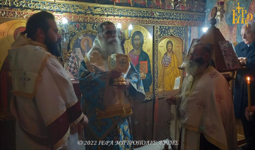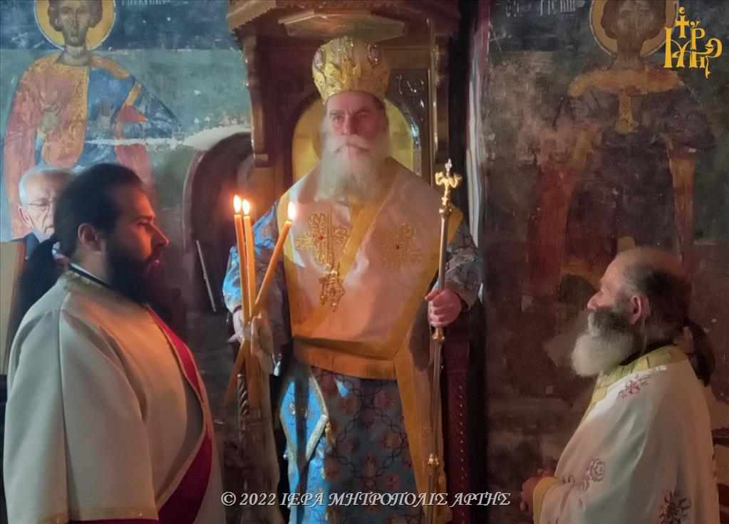 Το πρωΐ, ελειτούργησε στο Μοναστήρι ο Σεβασμιώτατος Μητροπολίτης Άρτης κ. Καλλίνικος. Ο Σεπτός Ποιμενάρχης μας, στο Κήρυγμά του, ετόνισε, ότι “Ευχαριστία σημαίνει αιώνιος ζωή”.