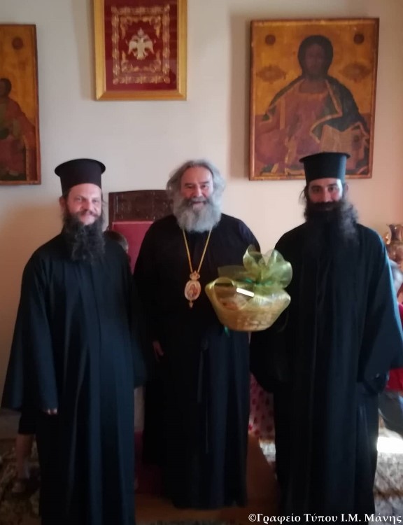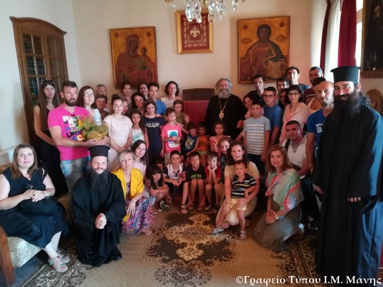 Στη συνέχεια, ο Σεβ. δέχθηκε την οικογένεια του κ. Βασιλείου Γερμενή, ανωτ. Αξιωματικού ε.α. του Πολεμικού Ναυτικού και ακολούθως τους εκδρομείς – προσκυνητές της ενορίας του Ιερού Μητροπολιτικού Ναού Ευαγγελισμού της Θεοτόκου Γρεβενών υπό τον πολύτεκνο εφημέριο του ως άνω Ναού π. Χρήστο Κούρτη και του διακόνου π. Θωμά Ψαρρά, οι οποίοι και διεβίβασαν τις ευχές του Σεβ. Μητροπολίτου Γρεβενών κ. Δαβίδ στον Ποιμενάρχη μας. Ο Σεβ. καλωσόρισε τους ευλαβείς εκδρομείς, τους μίλησε στο Ναό για την πίστη στο Θεό και την ανδρεία της Μάνης, προσέφερε δε γλυκά και ενθύμια.