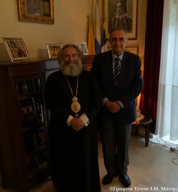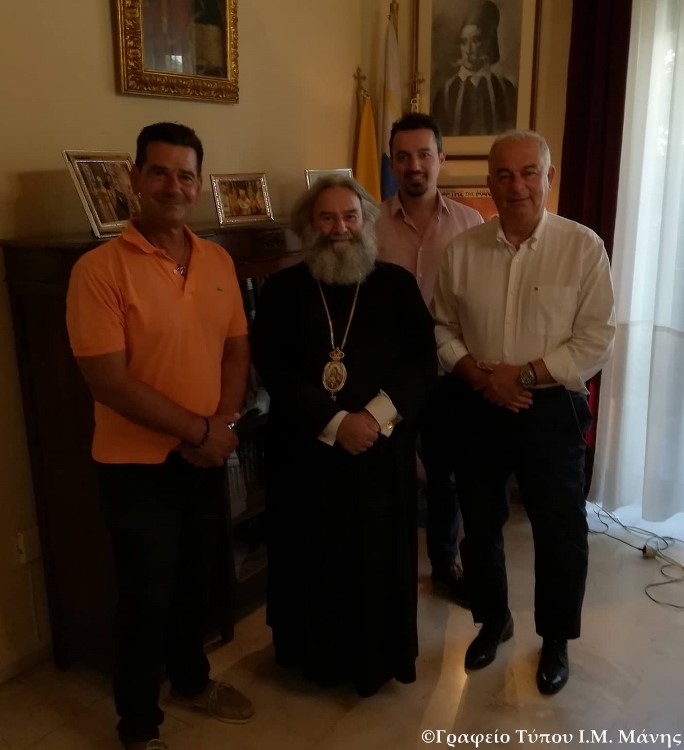 Σήμερα 22 Αυγούστου 2019, ο Σεβ. Μητροπολίτης Μάνης . Χρυσόστομος Γ’ δέχθηκε στο Γραφείο του τους Λάκωνες κ. Νικόλαο Σάκκαρη, Γενικό Πρόξενο στο Μιλάνο της Ιταλίας, τον κ. Γ. Κουτσογιαννόπουλο, Αντιπεριφερειάρχη Αττικής και τον κ. Ντόβολο, Δημοτικό Σύμβουλο Δήμου Βύρωνος. Με τους ανωτέρω εκλεκτούς επισκέπτες ο Σεβ. είχε μια ενδιαφέρουσα συζήτηση για πνευματικά και κοινωνικά θέματα.