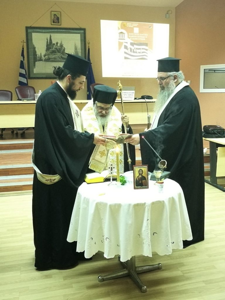 Κατ᾿ αρχήν ο ποιμενάρχης της Πέλλας, κ. Ιωήλ, τέλεσε τον καθιερωμένο Αγιασμό, ενώ παραλαμβάνοντας το υψηλού πνευματικού και εθνικού συμβολισμού αντίγραφο του ιερού κειμηλίου του ήρωα Μακεδονομάχου ευχαρίστησε την Εταιρία και εξήρε την πολύπλευρη ευεργετική δράση της.