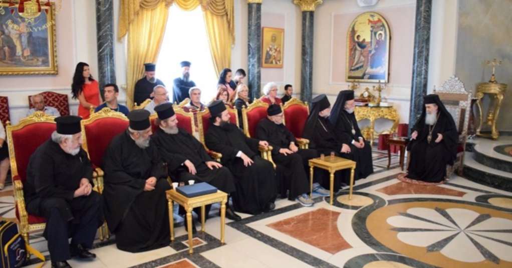 Τήν μεσημβρίαν τῆς Πέμπτης, 4ης /17ης Ὀκτωβρίου 2019, ὁ Μακαριώτατος Πατήρ ἡμῶν καί Πατριάρχης Ἱεροσολύμων κ.κ. Θεόφιλος ἐδέχθη εἰς τήν Πατριαρχικήν αἴθουσαν πλειάδα προσκυνητῶν, προερχομένων ἐκ τῆς Ἱερᾶς Μητροπόλεως Νέας Ἰωνίας ὑπό τόν Ἀρχιμανδρίτην Ἐπιφάνιον, ἀλλά καί ὁμάδα προσκυνητῶν ἐκ Βουλγαρίας καί ἐξ Ἀμερικῆς.