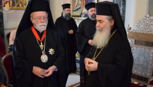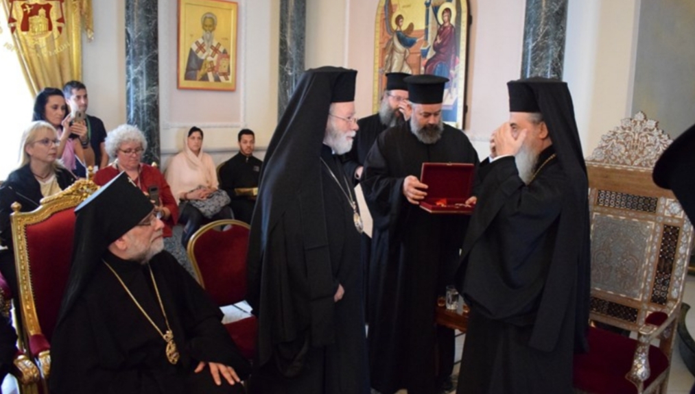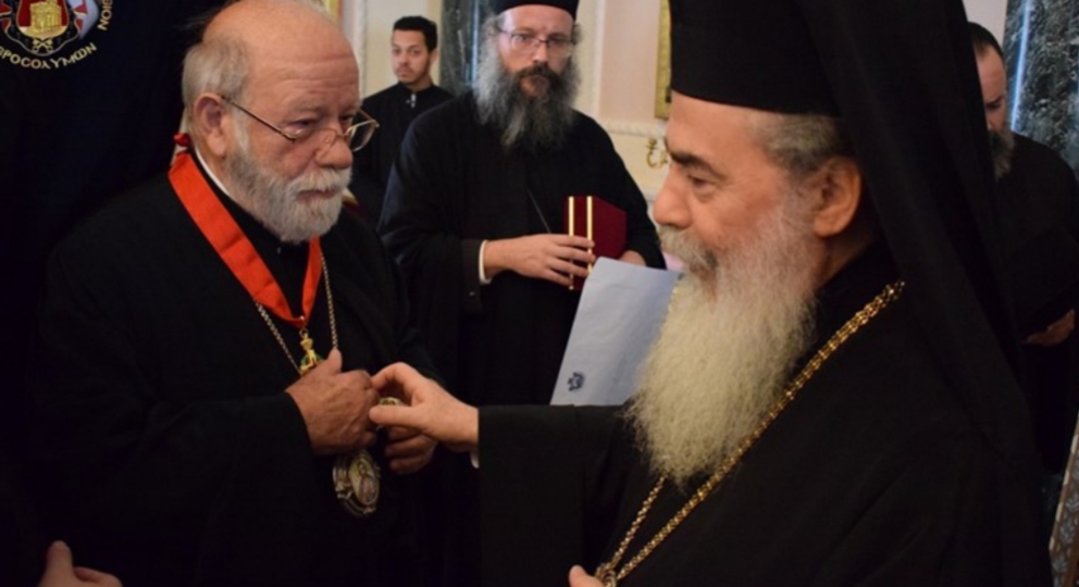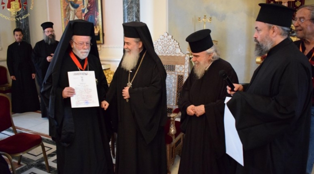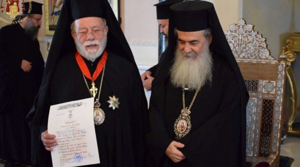 Τόν Σεβασμιώτατον Μητροπολίτην Ἀνέων ἐτίμησεν ὁ Μακαριώτατος διά τοῦ παρασήμου τοῦ Ἀνωτέρου Ταξιάρχου τοῦ Τάγματος τῶν Ἱπποτῶν τοῦ Παναγίου Τάφου εἰς ἀναγνώρισιν τοῦ σεβασμοῦ καί τῆς συμπαραστάσεως αὐτοῦ πρός τό Πατριαρχεῖον Ἱεροσολύμων καί εἰς ἀναγνώρισιν τοῦ ἔργου, τό ὁποῖον ἐπετέλει ἐπί ἔτη, ὡς βοηθός Ἐπίσκοπος (Λαμψάκου τότε) εἰς τό ἐν Σαμπεζύ Κέντρον τοῦ Οἰκουμενικοῦ Πατριαρχείου, βοηθῶν ἐν ἀγάπῃ, ἁπλότητι, ἀδελφοσύνῃ, φιλοξενίᾳ καί γνησίᾳ ταπεινώσει πάντας τούς μετέχοντας εἰς τό ἔργον προετοιμασίας τῆς ἁγίας καί Μεγάλης Συνόδου τῆς Ὀρθοδοξίας.