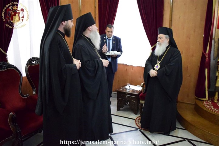 Τήν μεσημβρίαν τῆς Παρασκευῆς, 28ης Μαρτίου /10ης Ἀπριλίου 2020, ἔλαβε χώραν εἰς τήν αἴθουσαν τοῦ Πατριαρχείου ἡ ἀπό ἐτῶν καί ἐν συνεργασίᾳ μετά τοῦ ἱδρύματος τοῦ Ἁγίου Ἀνδρέου τῆς Ρωσίας καθιερωθεῖσα προσευχή ὑπέρ τῆς εἰρήνης τῆς Ἁγίας Πόλεως Ἱερουσαλήμ καί τοῦ σύμπαντος κόσμου, προεξάρχοντος τῆς Α.Θ.Μ. τοῦ Πατρός ἡμῶν καί Πατριάρχου Ἱεροσολύμων κ.κ. Θεοφίλου, τῇ συνοδείᾳ Ἁγιοταφιτῶν Πατέρων καί τῇ συμμετοχῇ τοῦ Προϊσταμένου τῆς Ρωσικῆς Ἀποστολῆς εἰς Ἱεροσόλυμα (Missia) Ἀρχιμανδρίτου Ἀλεξάνδρου καί τῆς συνοδείας αὐτοῦ.