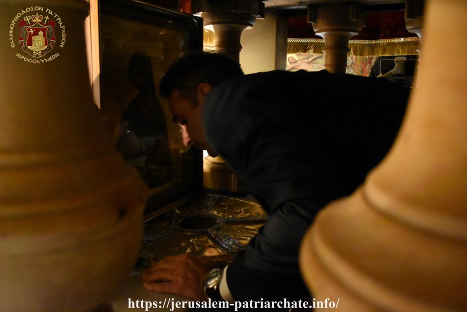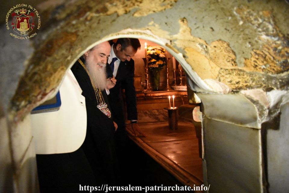 Τό ἑσπέρας τῆς Τρίτης, 3ης/16ης Ἰουνίου 2020, ὁ ἐξοχώτατος Πρωθυπουργός τῆς Ἑλλάδος κ. Κυριᾶκος Μητσοτάκης, εὑρισκόμενος εἰς Ἰσραήλ, εἰς ἐπίσημον ἐπίσκεψιν ἐργασίας, συνοδευόμενος ὑπό τῆς συζύγου αὐτοῦ κ. Μαρέβας Μητσοτάκη καί τοῦ υἱοῦ αὐτοῦ, ὑπό κλιμακίου πολιτικῶν συνεργατῶν αὐτοῦ, ὡς τοῦ Ὑπουργοῦ  Ἐνεργείας κ. Κωστῆ Χατζηδάκη, τοῦ  Πρέσβεως τῆς Ἑλλάδος εἰς τό Ἰσραήλ κ. Σαρρῆ, τῆς πρῴην Γενικῆς Προξένου εἰς Ἱεροσόλυμα κ. Ἑλένης Σουρανῆ καί τοῦ νῦν Γενικοῦ Προξένου τῆς Ἑλλάδος εἰς Ἱεροσόλυμα κ. Χρήστου Σοφιανοπούλου και τῆς κ. Τζίμα ἐπεσκέφθη τόν Ναόν τῆς Ἀναστάσεως.