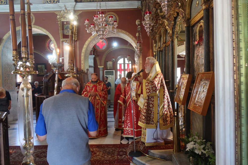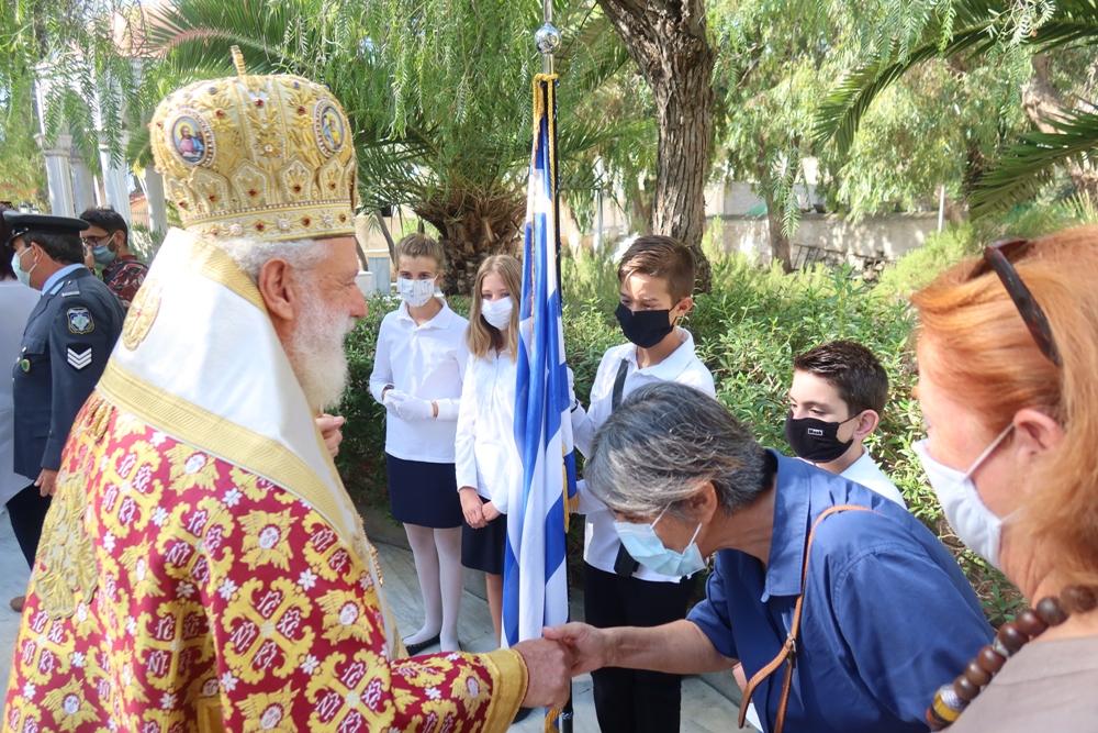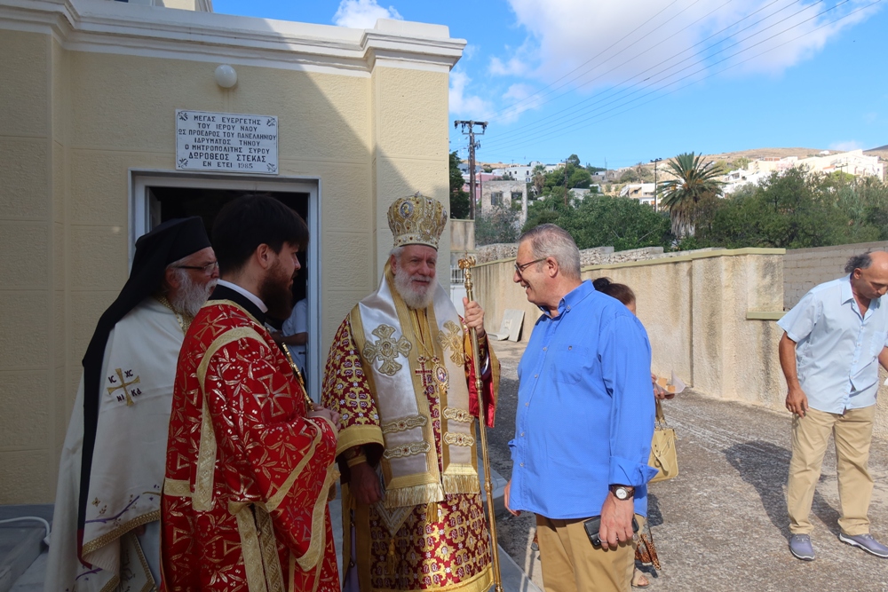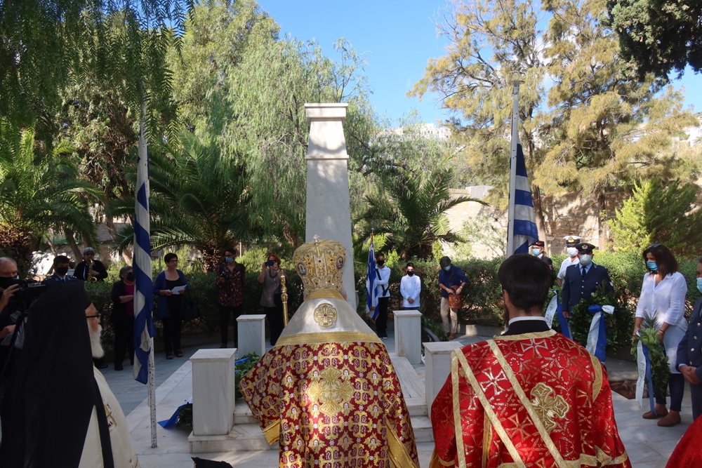 Μετά το πέρας της Θείας Λειτουργίας, ο Σεβασμιώτατος κ. Δωρόθεος Β’ προέστη της Δοξολογίας για την απελευθέρωση της Σύρου από τα Γερμανικά στρατεύματα Κατοχής, κατά την οποία ο Δήμαρχος Σύρου- Ερμούπολης κ. Νικόλαος Λειβάρας εξεφώνησε τον Πανηγυρικό της Ημέρας, αναφερθείς στο ηρωικο φρόνημα των Ελλήνων, οι οποίοι, όπως τόνισε στον επίλογό του «δεν γονατίζουν παρά μόνο μπροστά στους νεκρούς τους». (Γ. Ρίτσος).