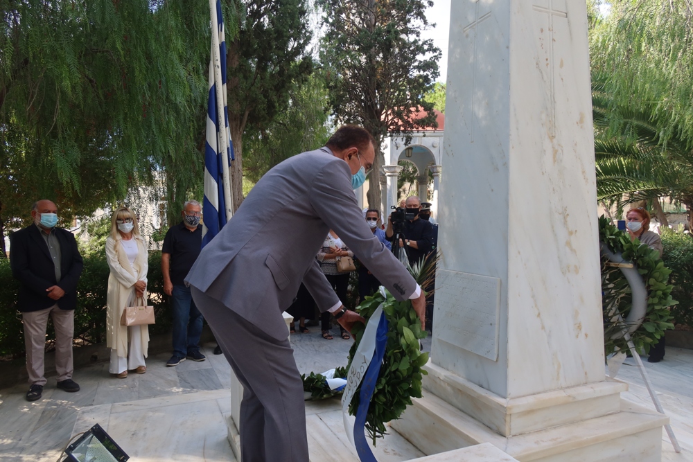 Στη συνέχεια, στο παρακείμενο μνημείο Θυμάτων Κατοχής, στο λεγόμενο «Κτήμα Χαρουλιαρη», τελέσθηκε επιμνημόσυνη δέηση και κατετέθησαν στέφανοι από τους εκπροσώπους των πολιτικών και στρατιωτικών Αρχών και των αντιστασιακών οργανώσεων.