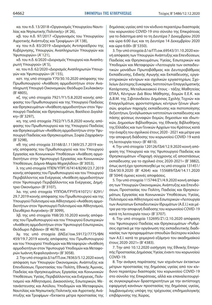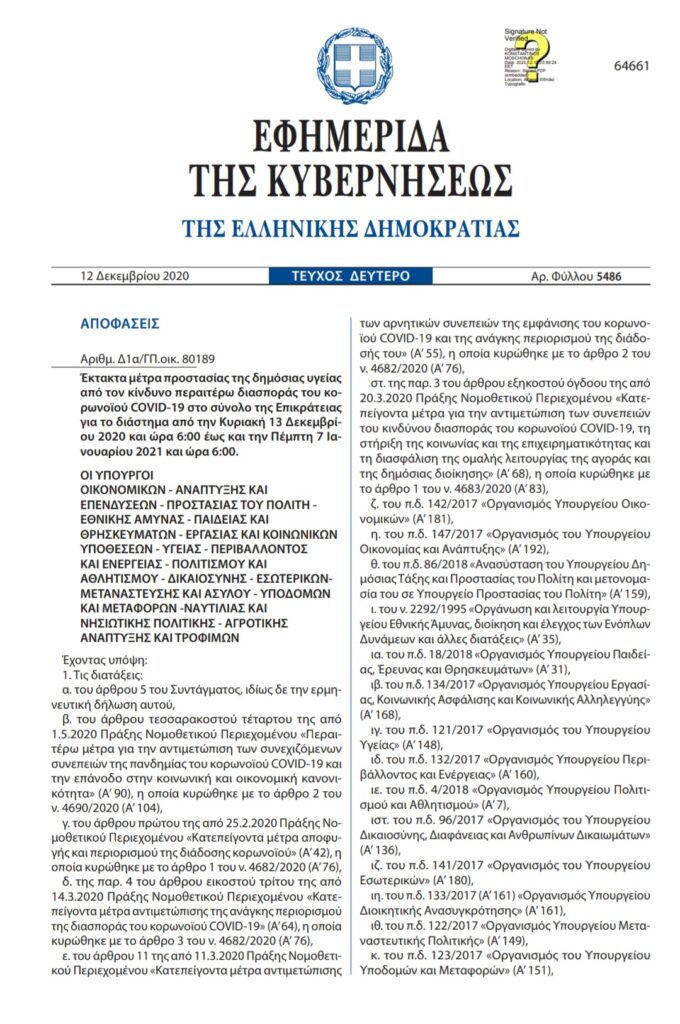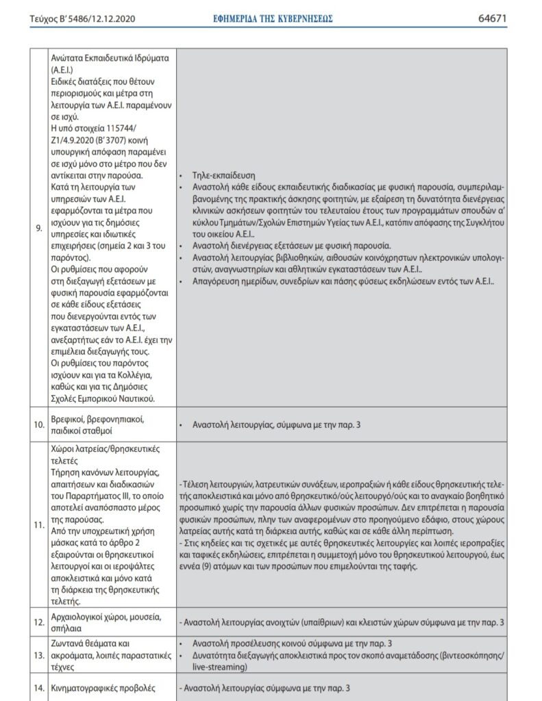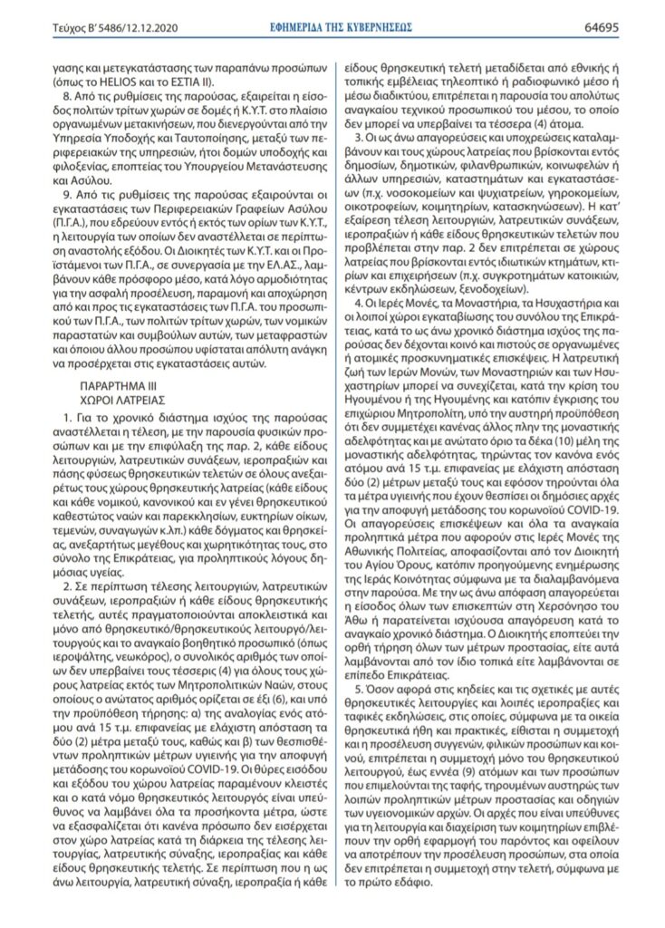 Νέα ΚΥΑ δημοσιεύτηκε για τους χώρους λατρείας. Η ισχύς της θα είναι μέχρι της 7 Ιανουαρίου.